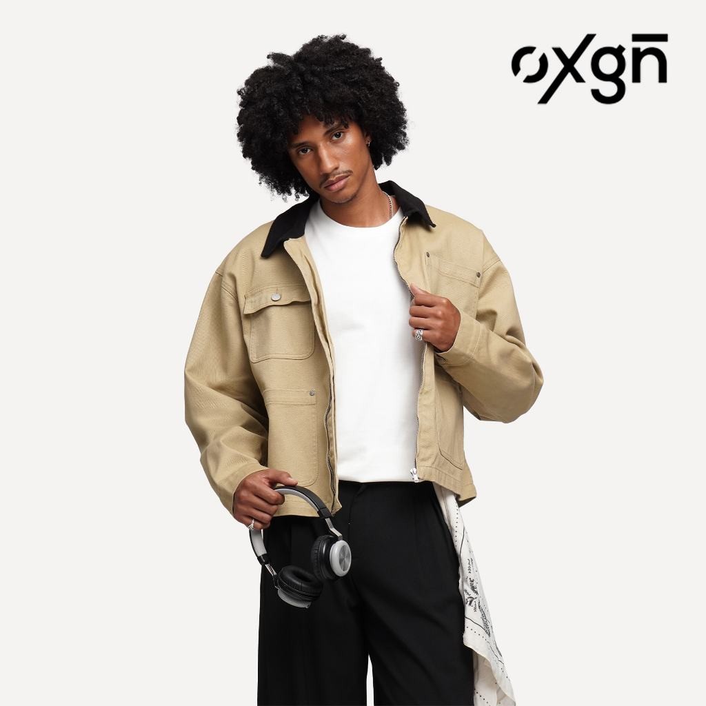 OXGN Workwear Jacket For Men (Black/Khaki)