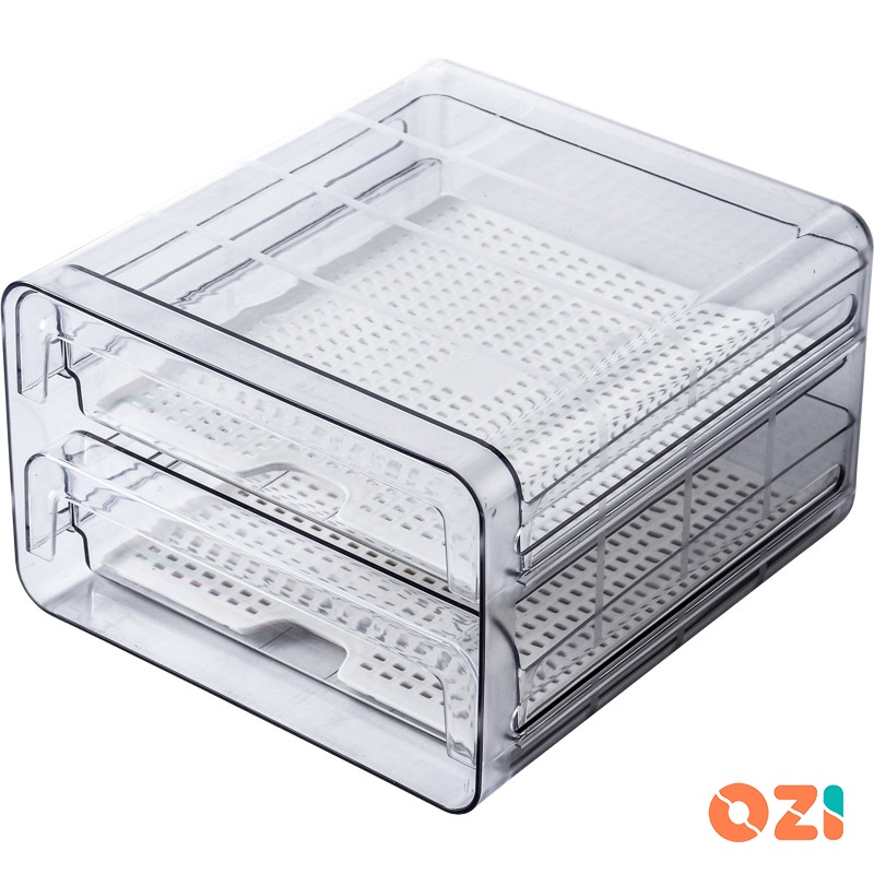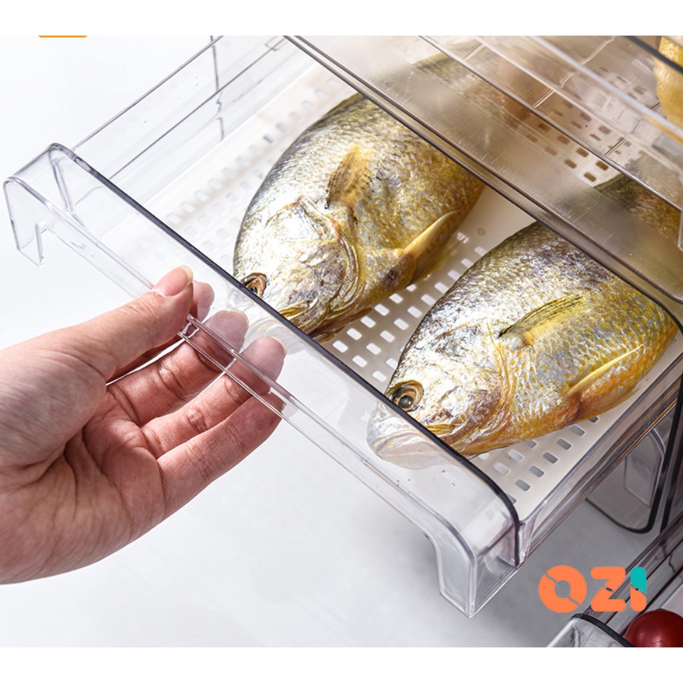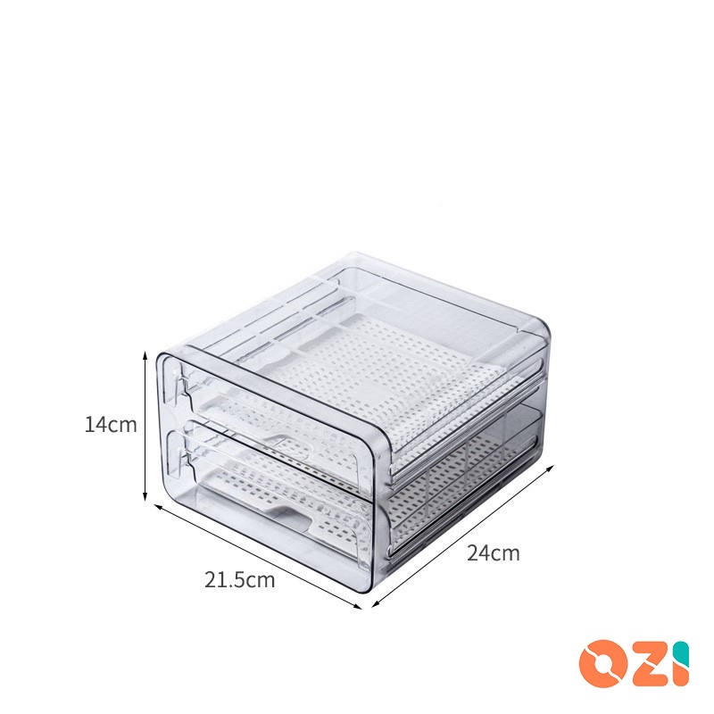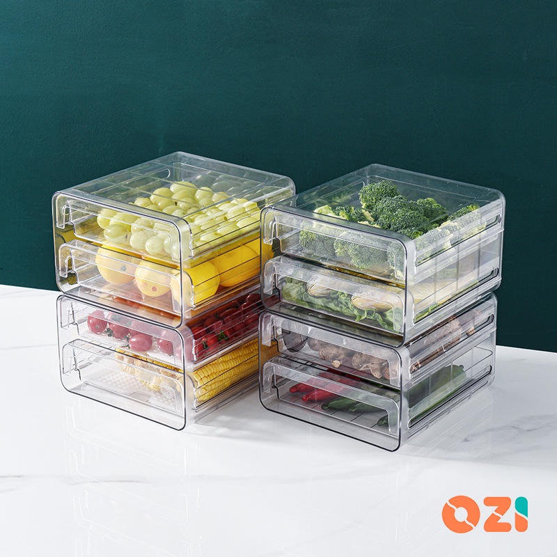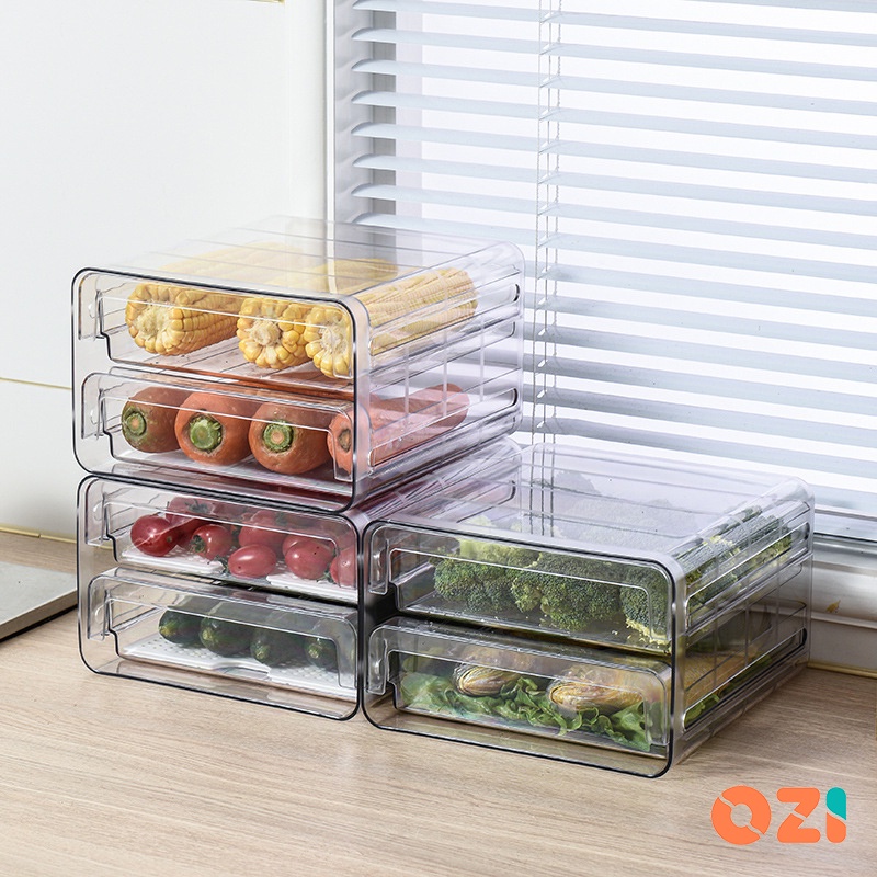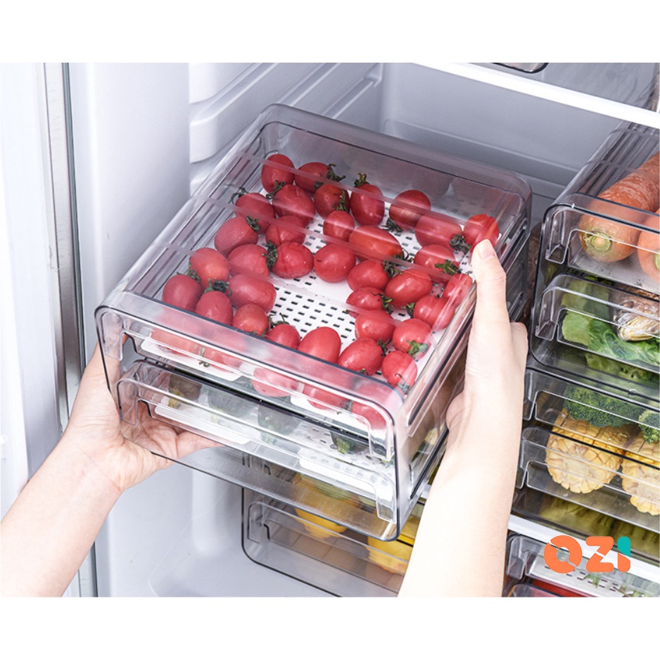 OZI Double Layer Clear plastic stackable fridge drawers organizer pull out storage box with drain