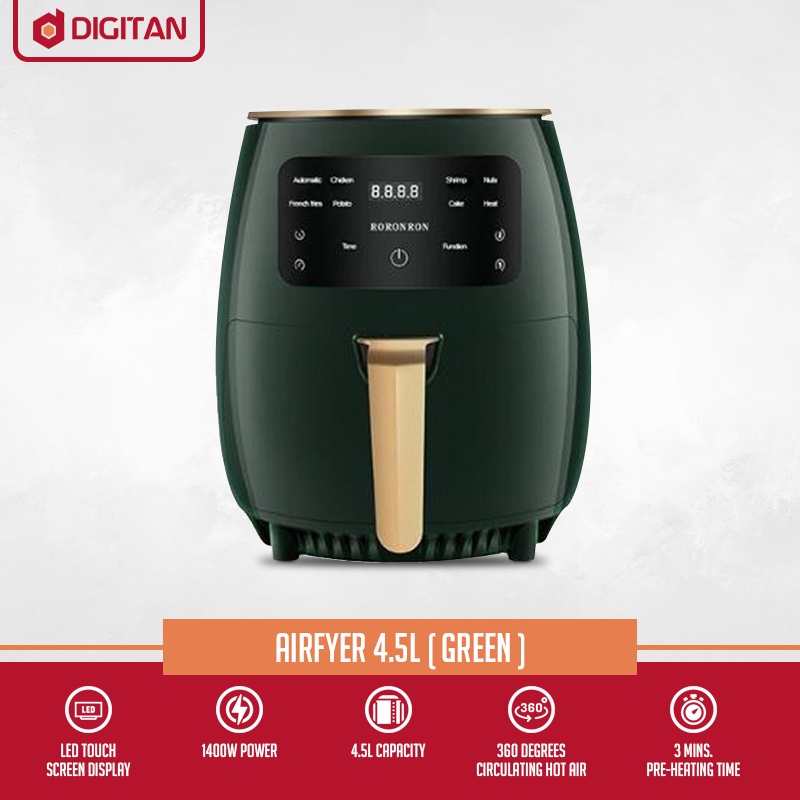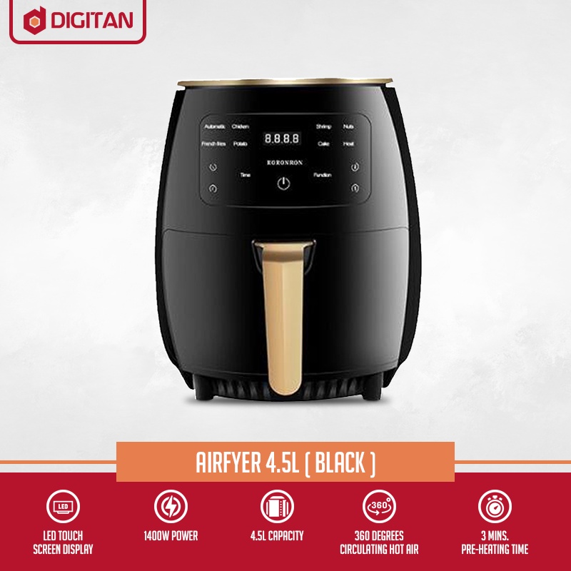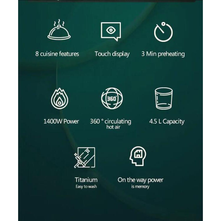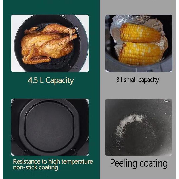 Air Fryer 4.5L Light Oil Free Maximum Capacity 1400W Power 3 Minutes Pre-Heating Time with 8 Cuisine