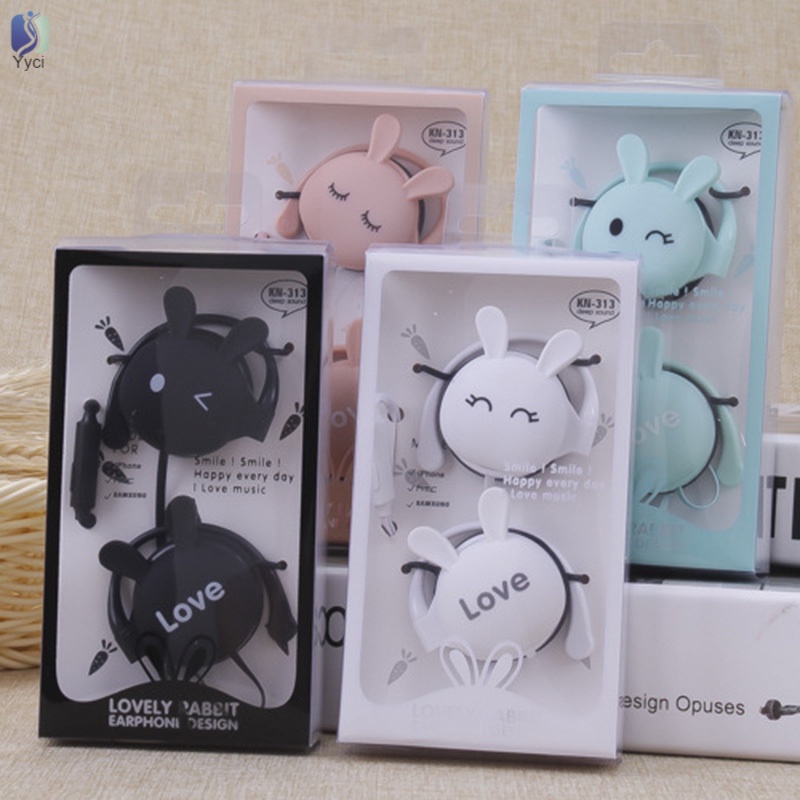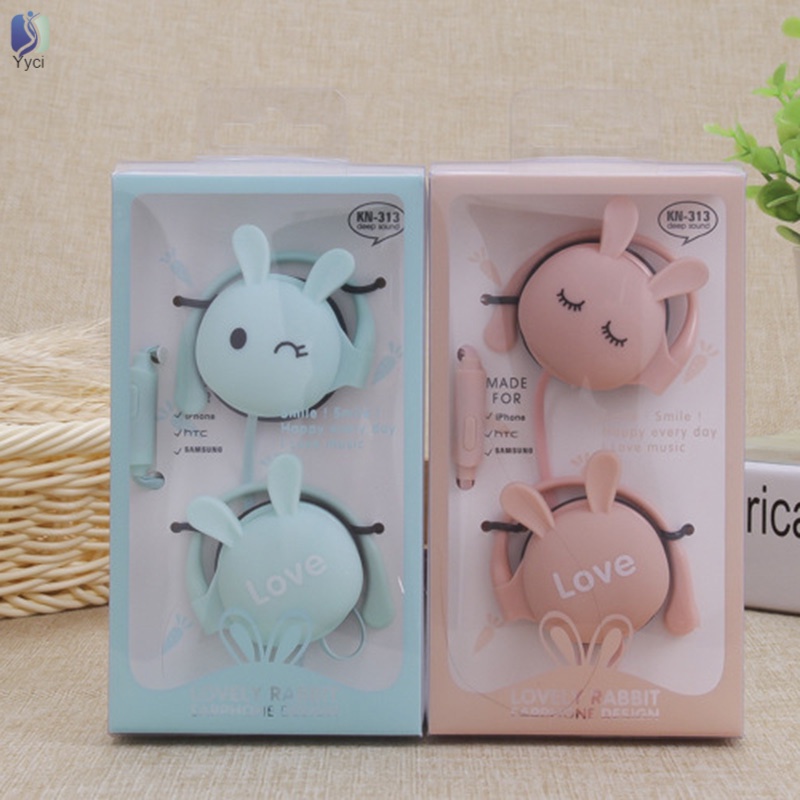 Cartoon Cute Rabbit Hanging Ear Voice Headset Computer Mobile Phone Universal Noodle