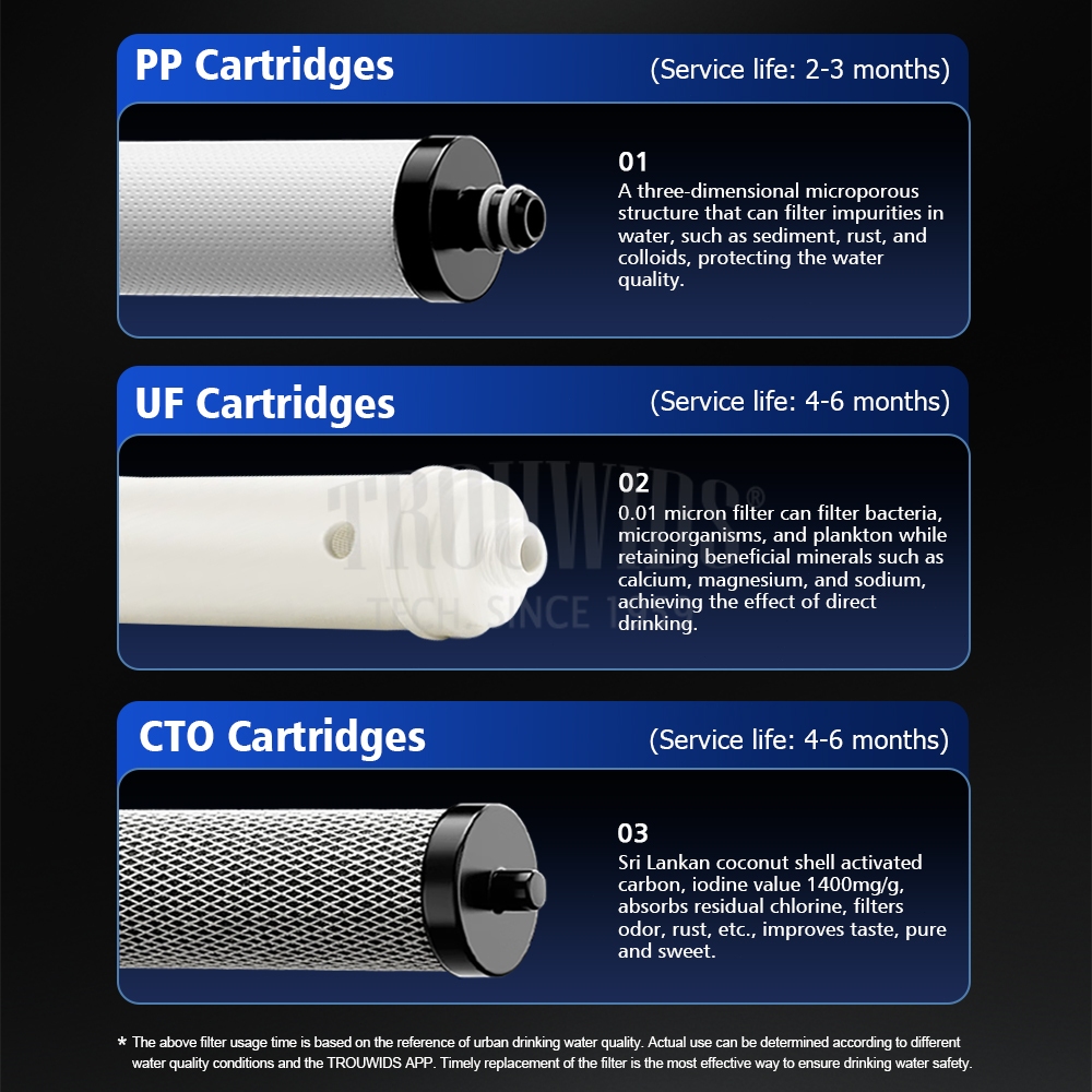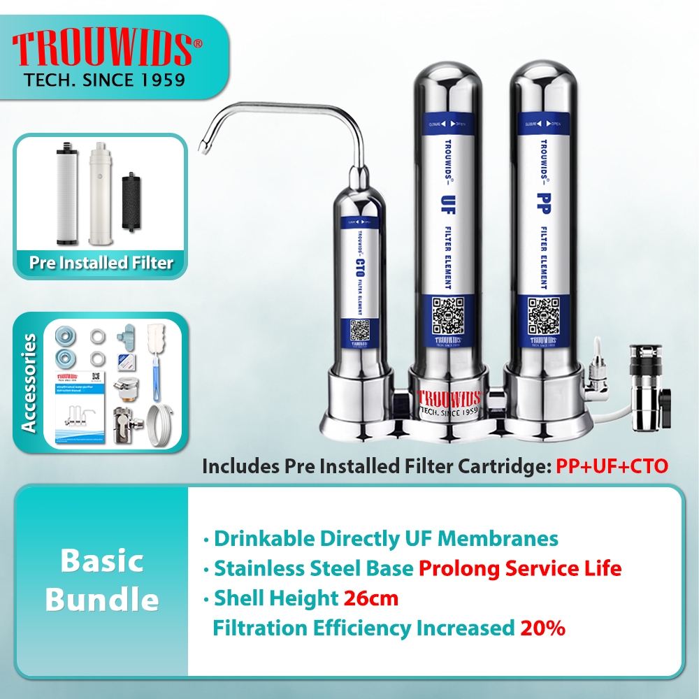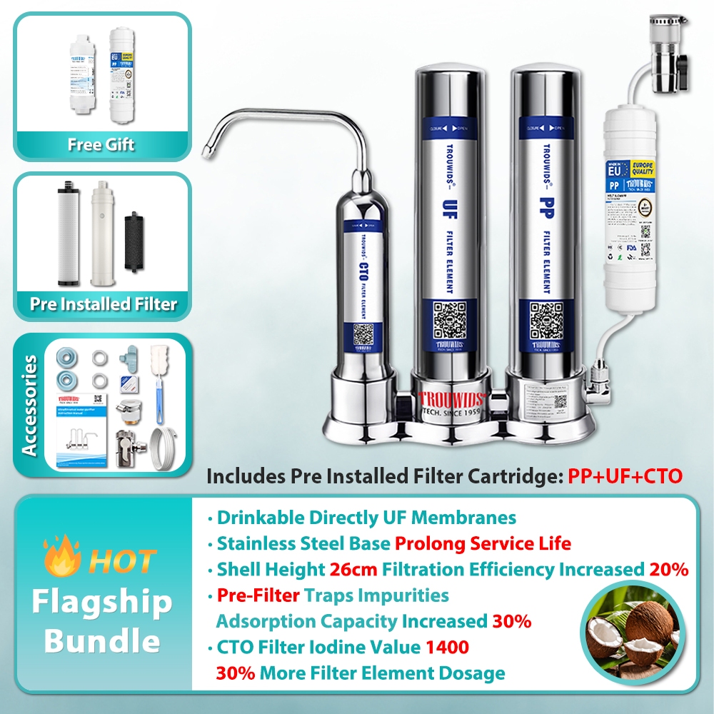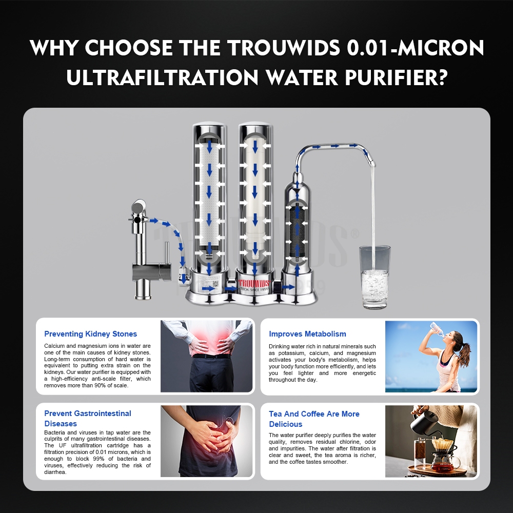 TROUWIDS 0.01 Micron Portable Water Purifier Filter System Renter-Essential Water Filter For Faucet