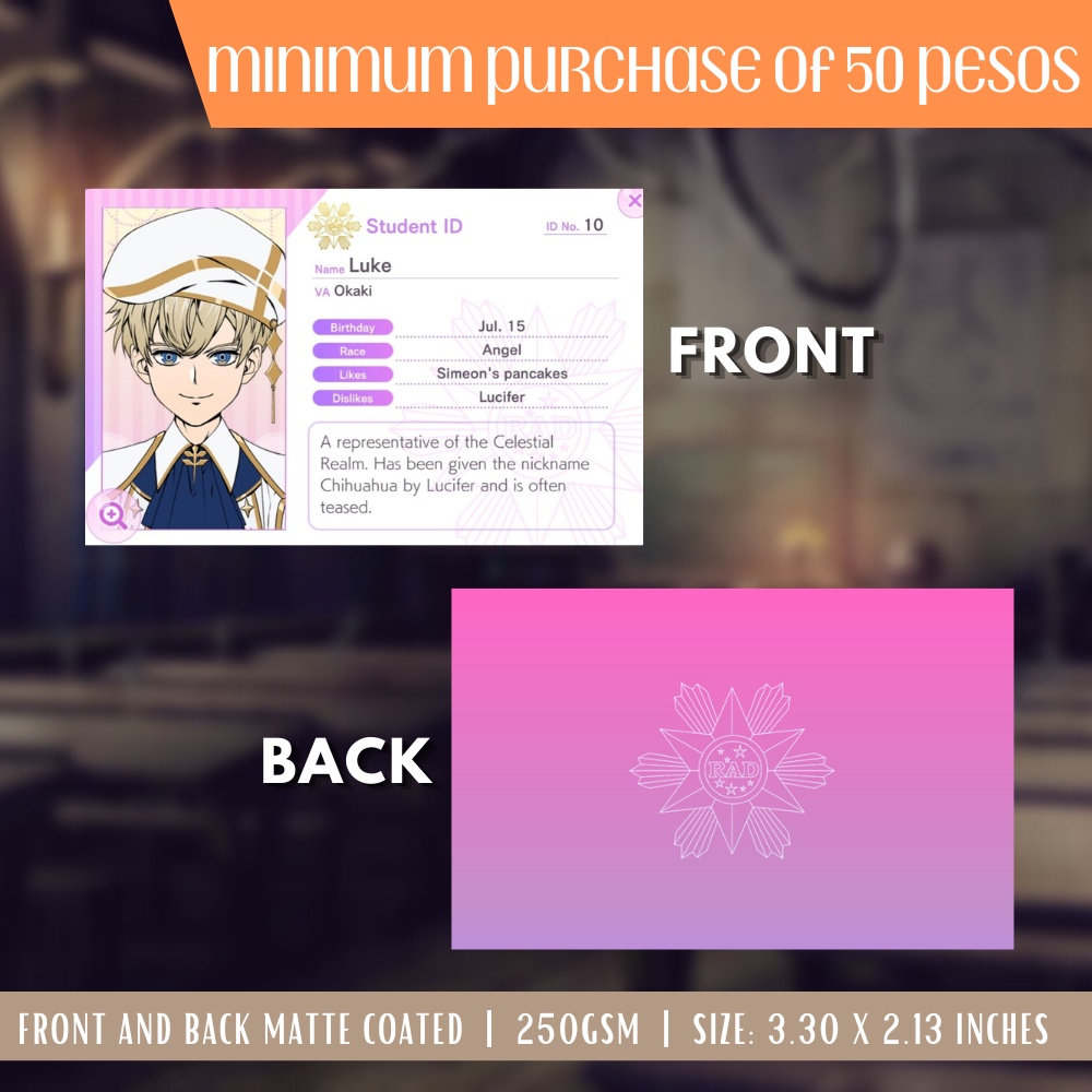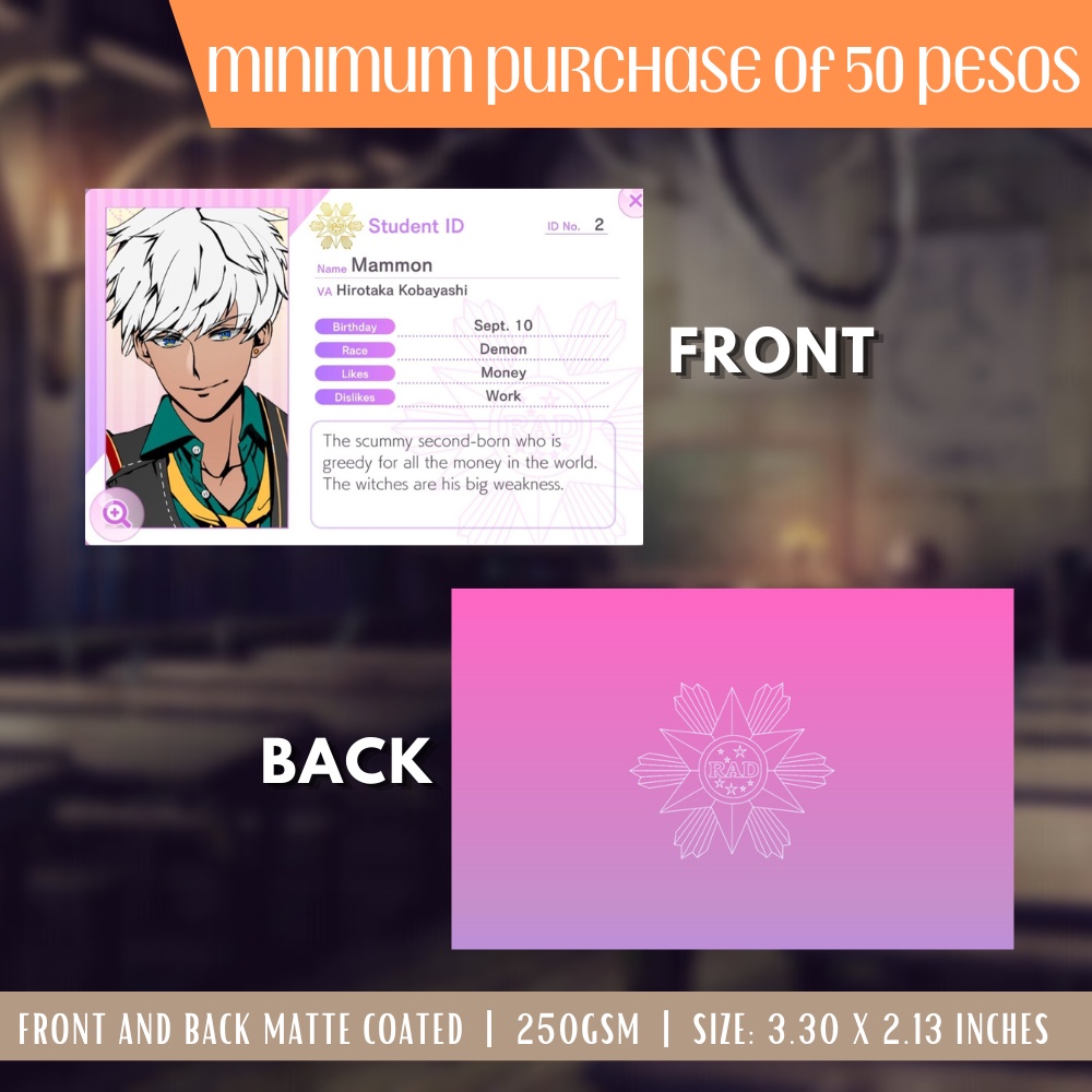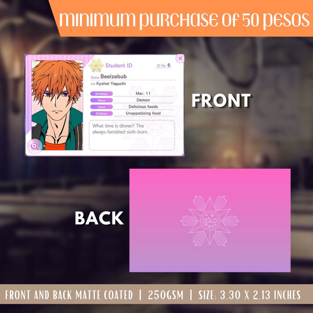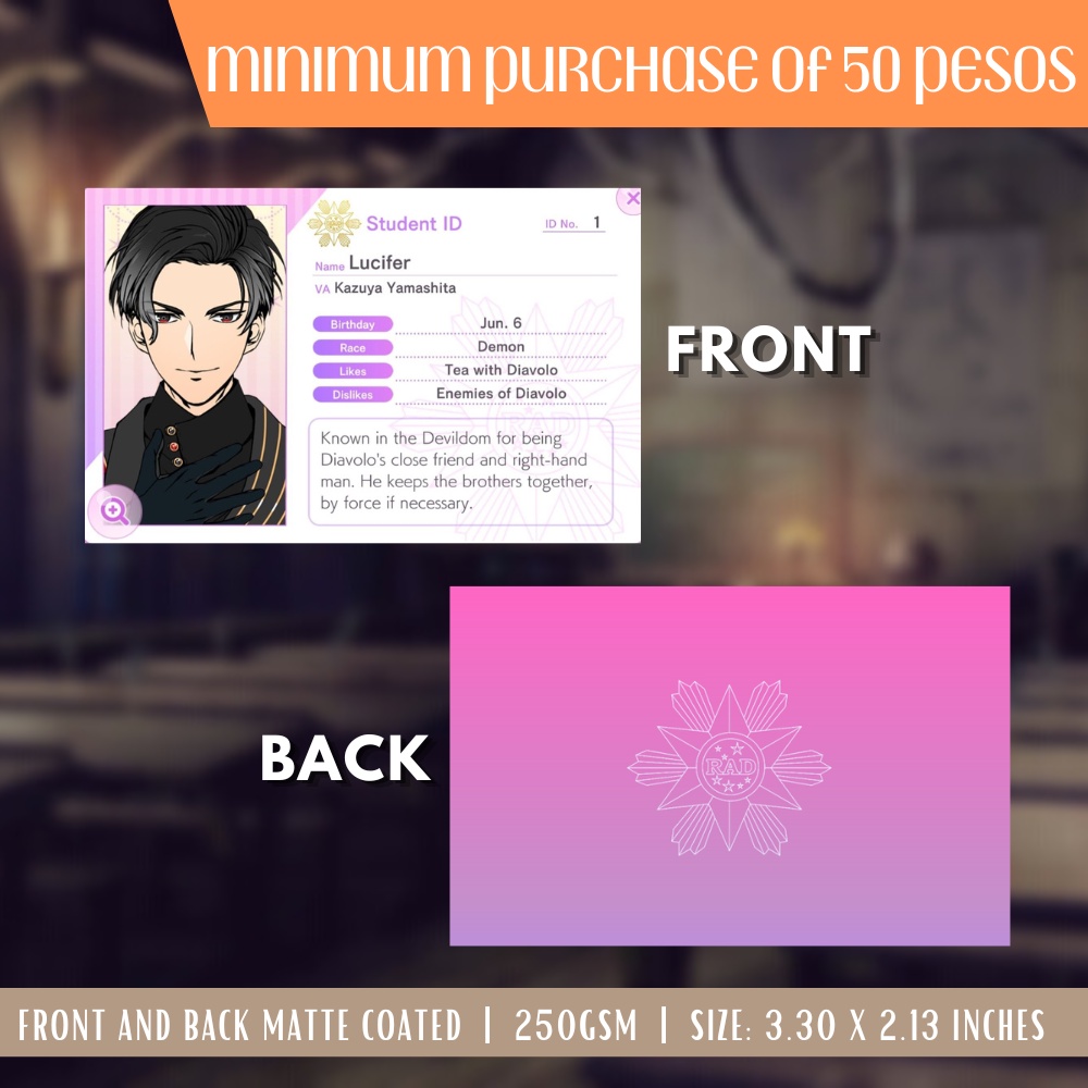 Obey Me Otome Game Anime ID Card