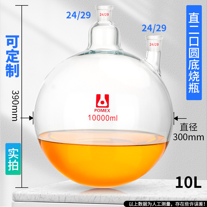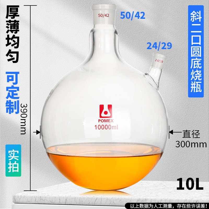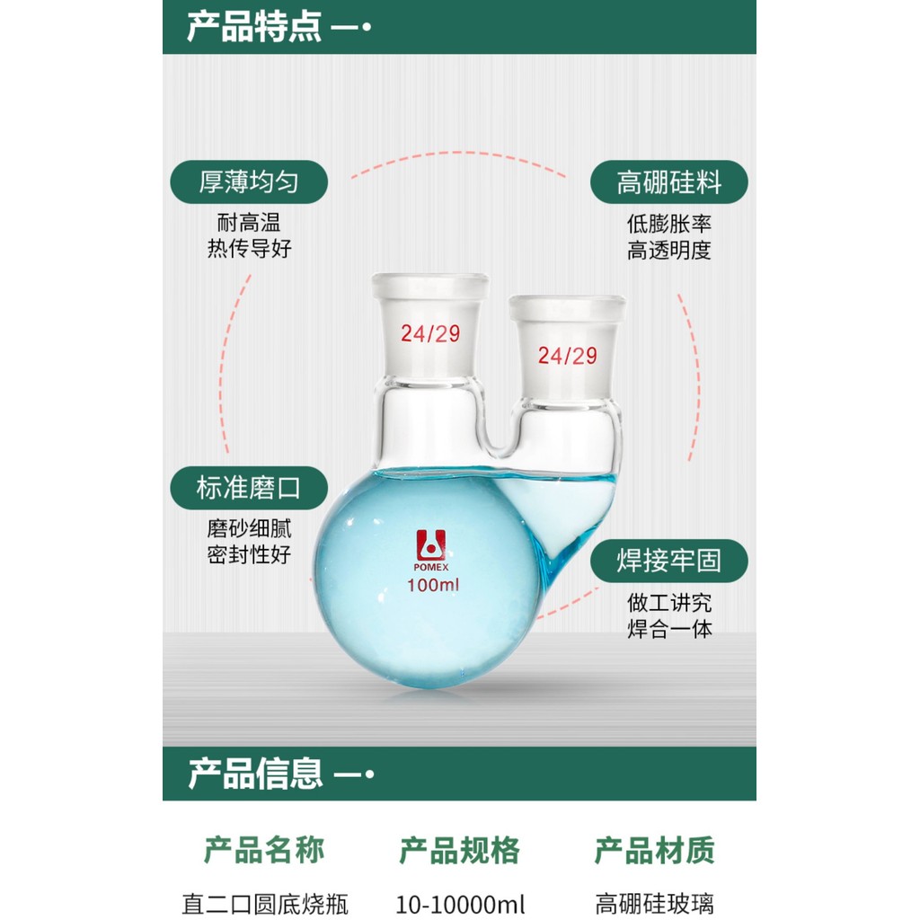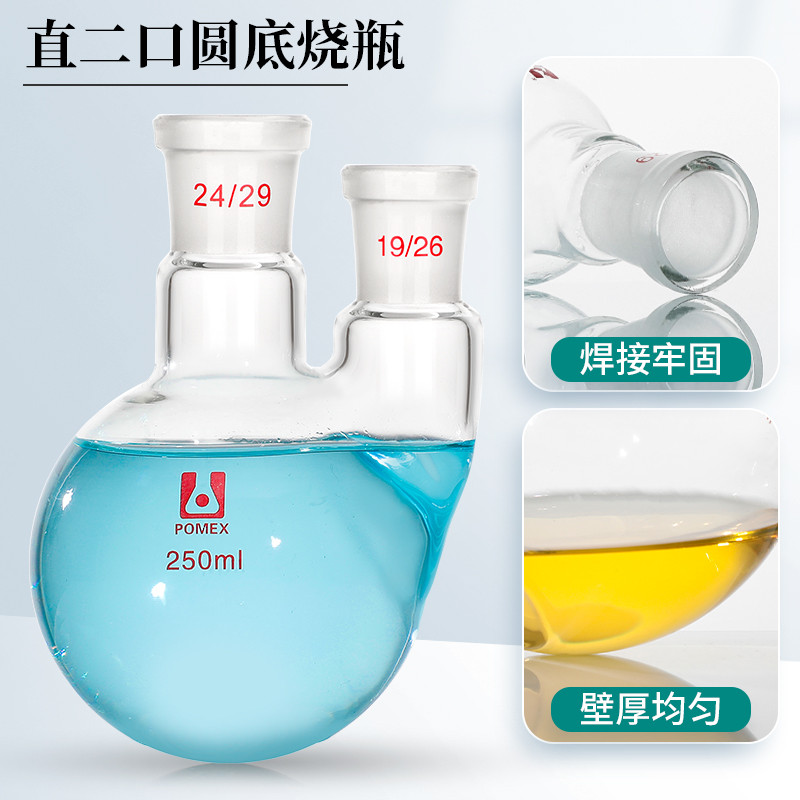 Oblique/straight Two-Neck Double-Neck Round Bottom Flask Two-Port Double-Hole Reaction Flask Thickened Grinding Mouth Sulfur Dioxide Distilled Flat Bottom Flask 1,000ml/5/