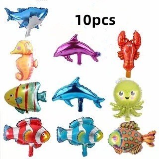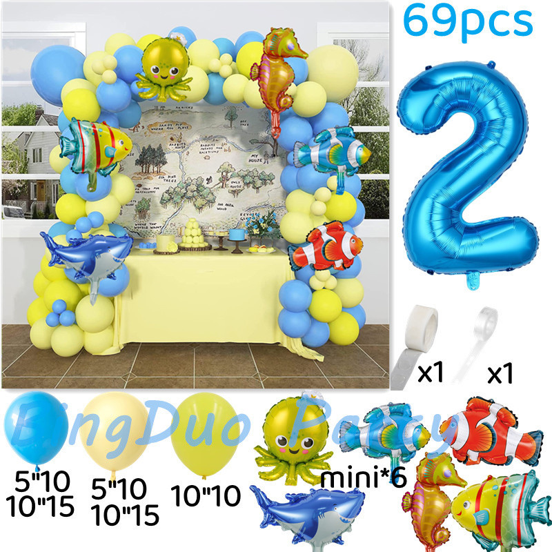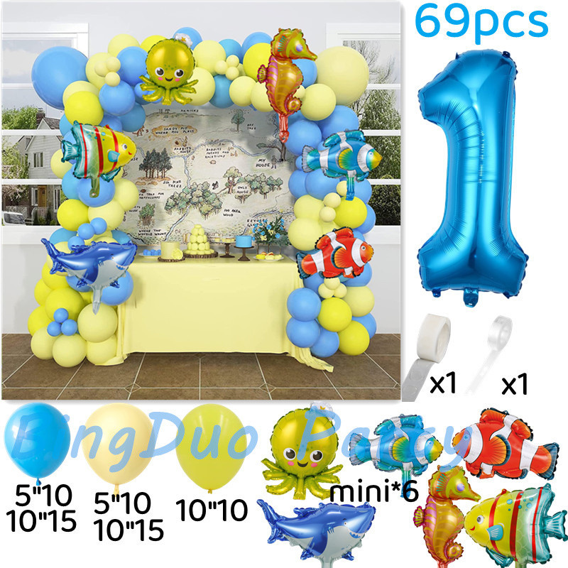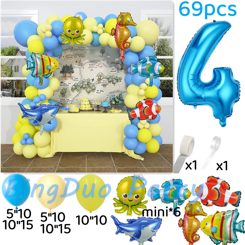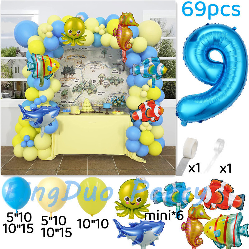 Ocean Theme Sea Animal Balloons Set Blue Yellow Latex Balloon Fish Octopus Shark Foil Balloon Baby Shower Party Needs