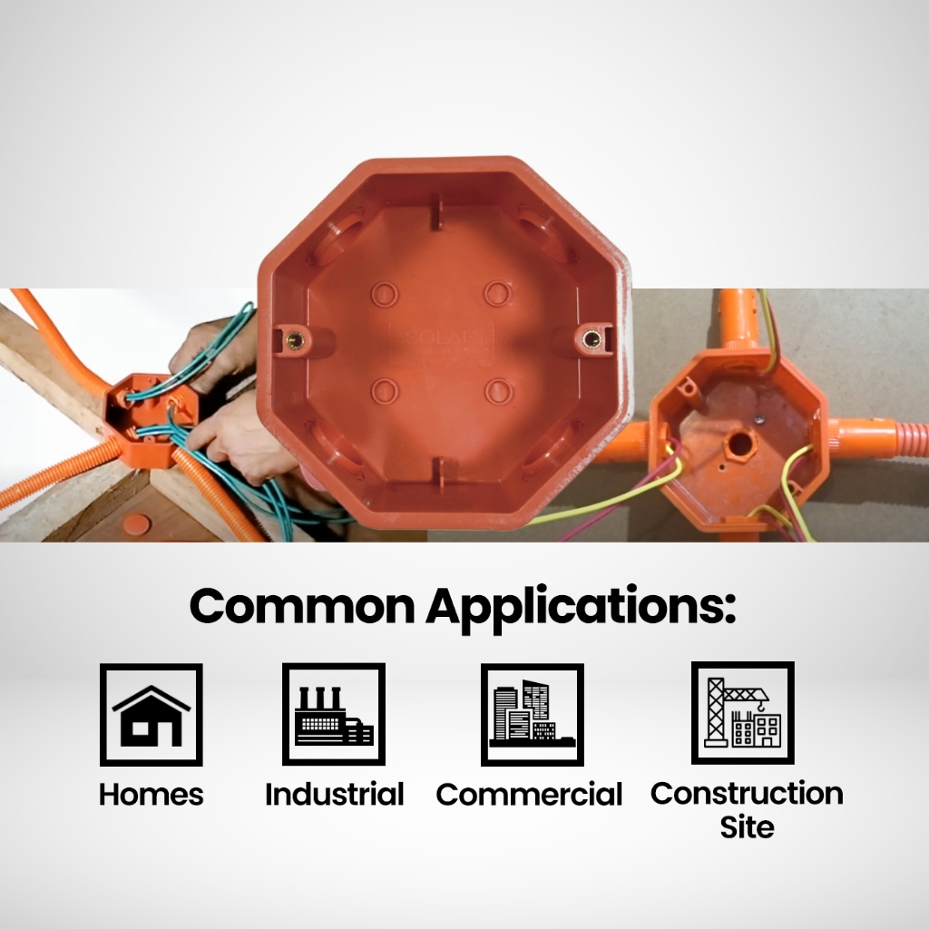 Octagon Electrical Junction Box and Cover Orange