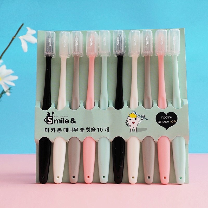 10pcs Macaron Toothbrush Soft Bristles Toothbrush Family Toothbrush Set With Protective Cover