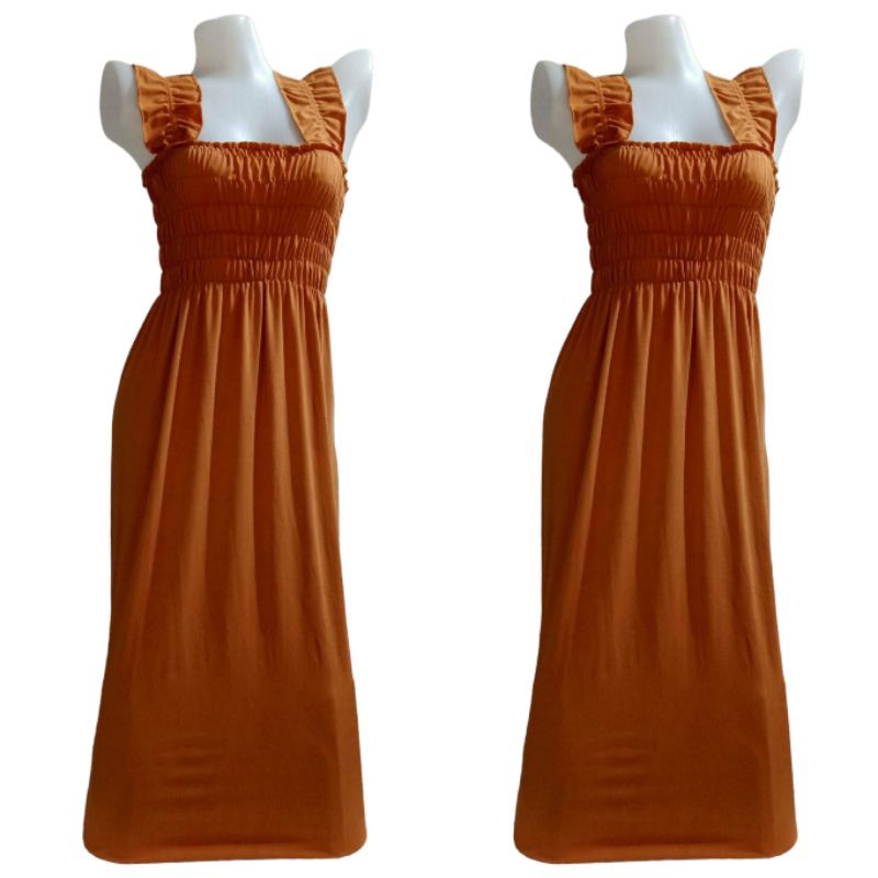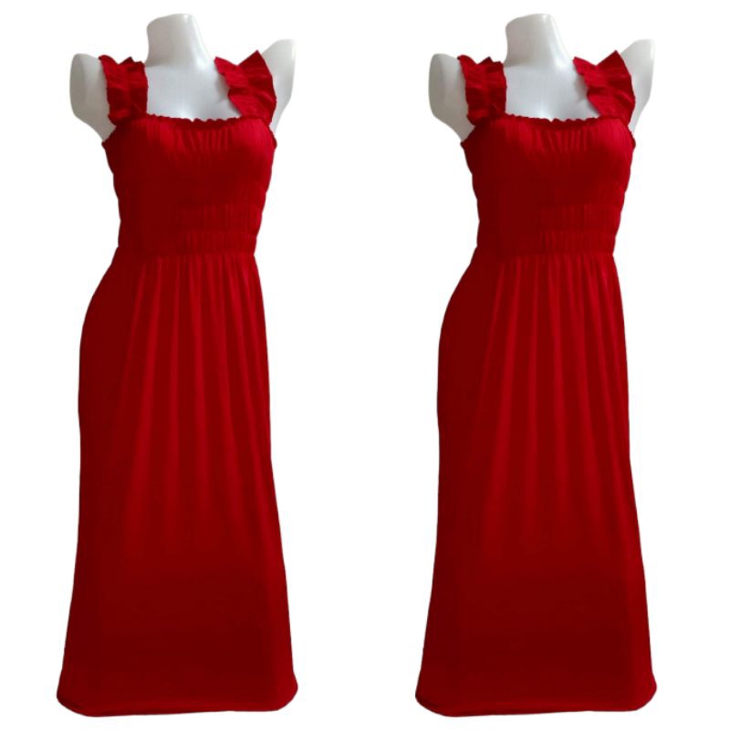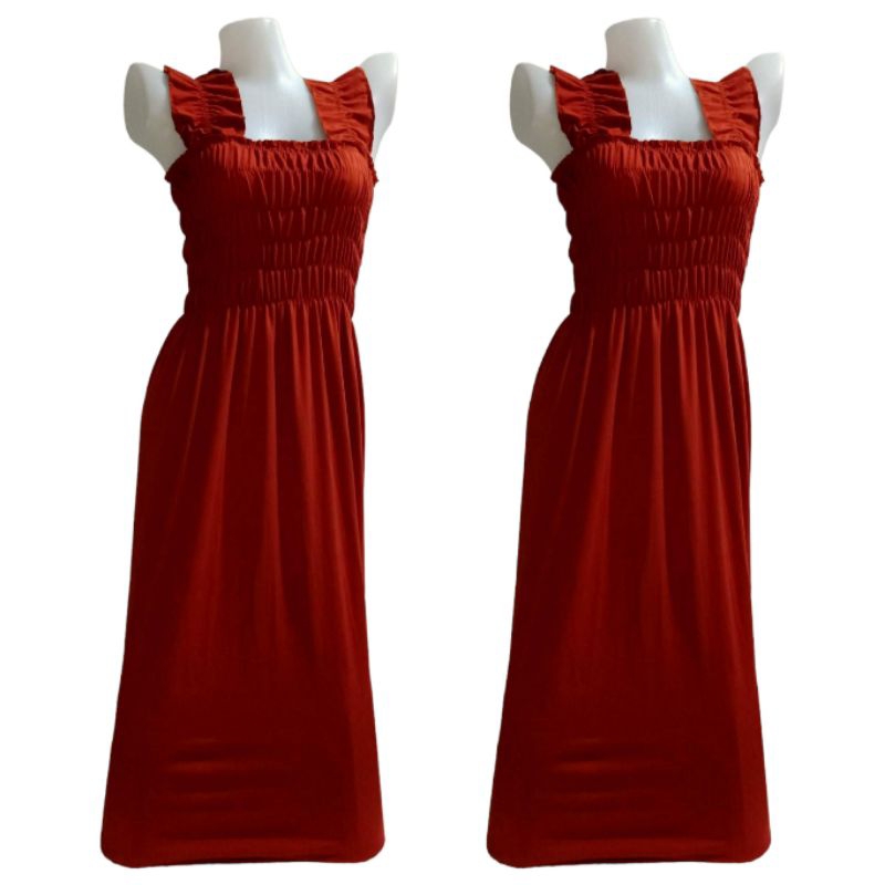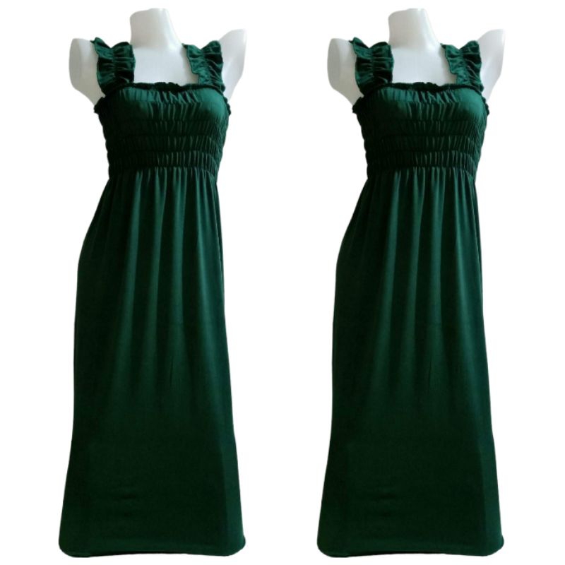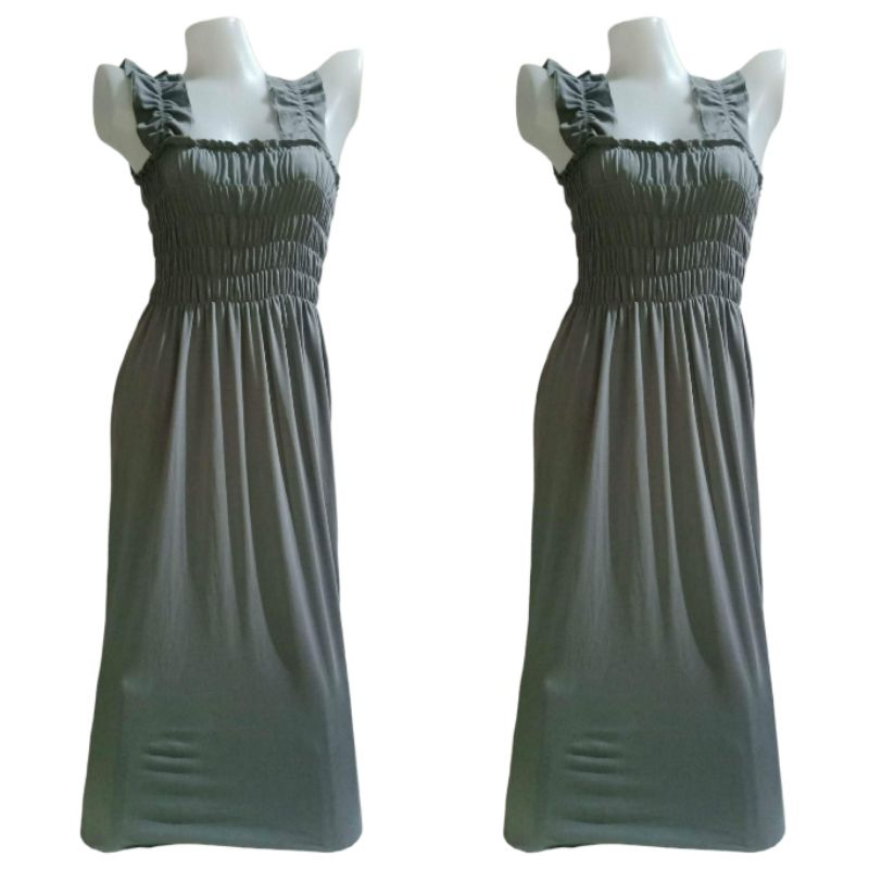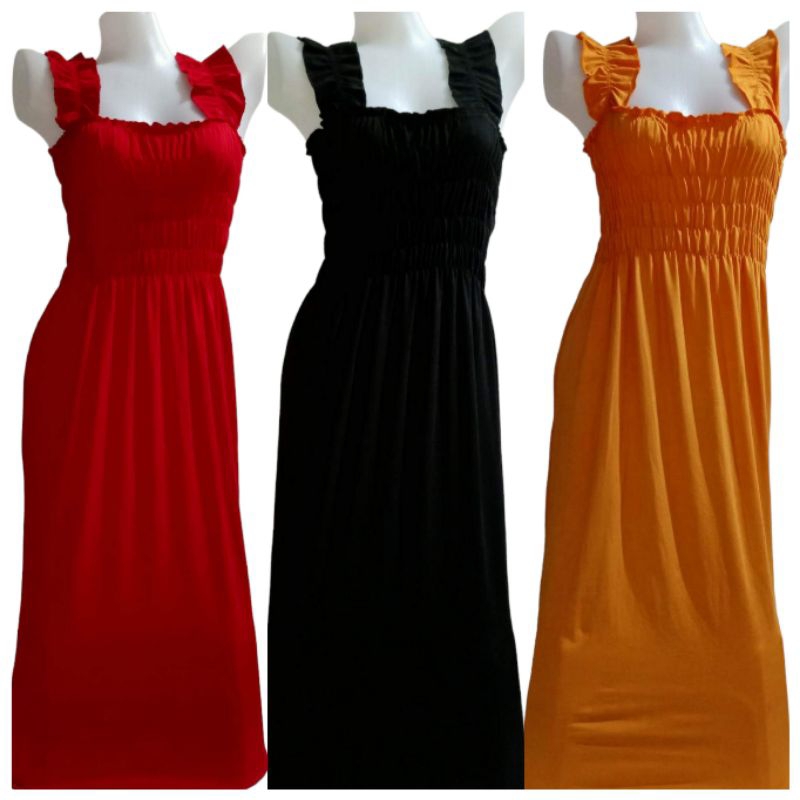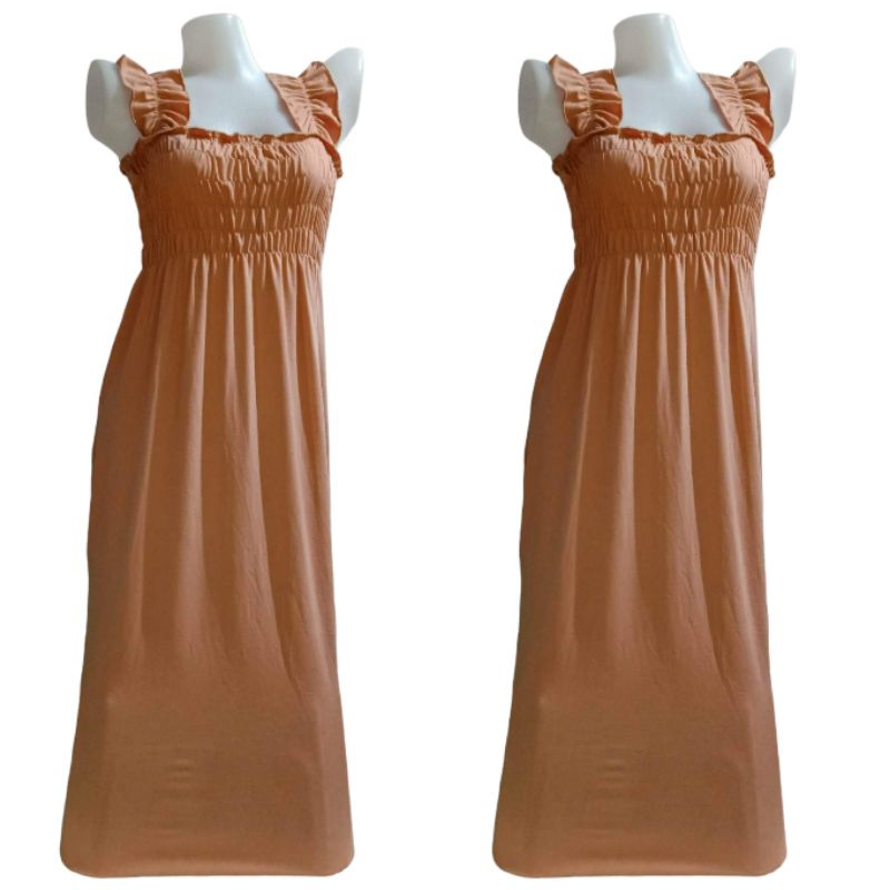 Long Smocking Ruffles Dress | Daster Pambahay | Maternity Dress | Cotton Spandex | Below the knee