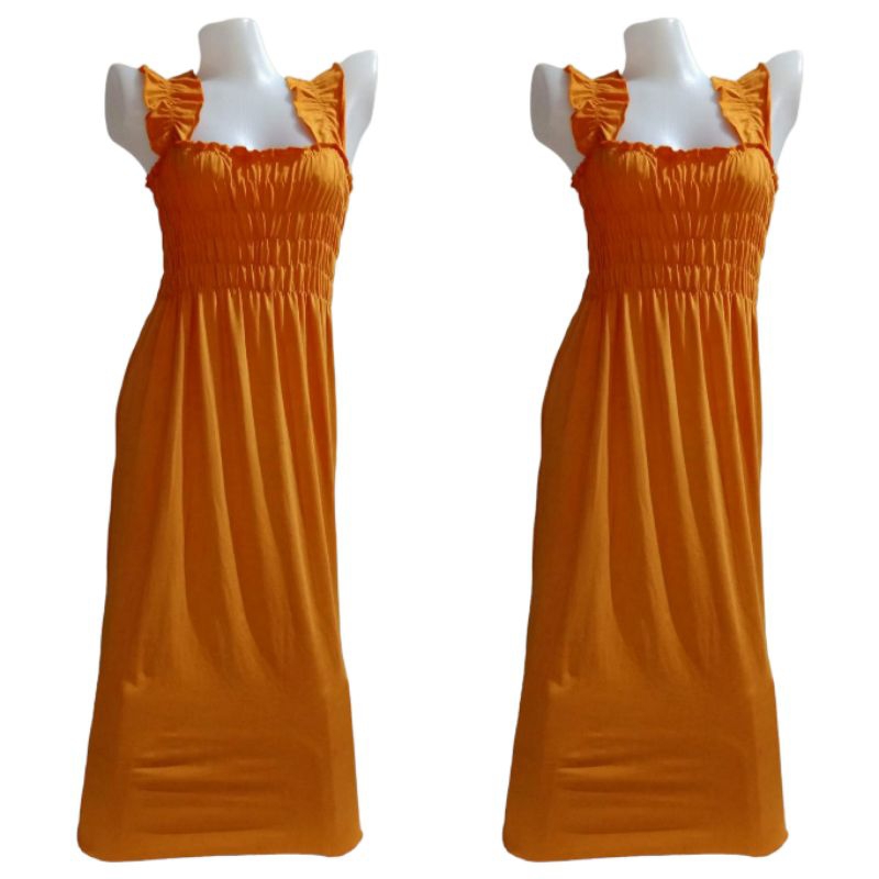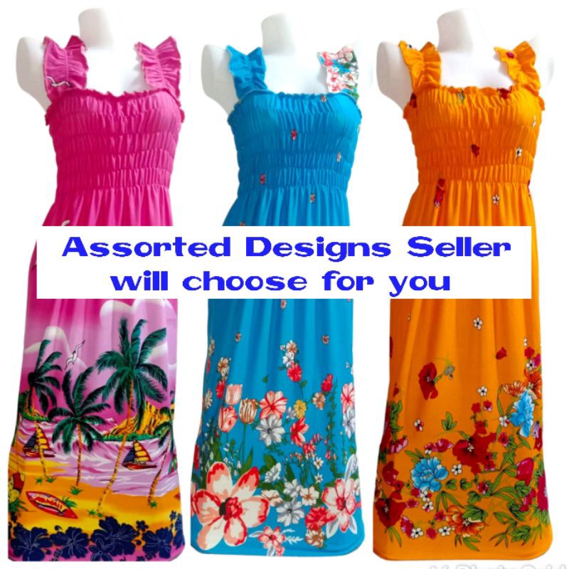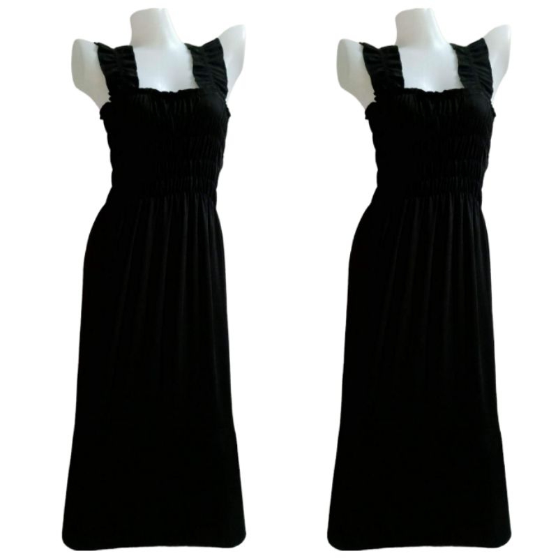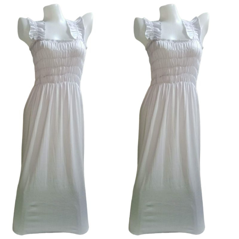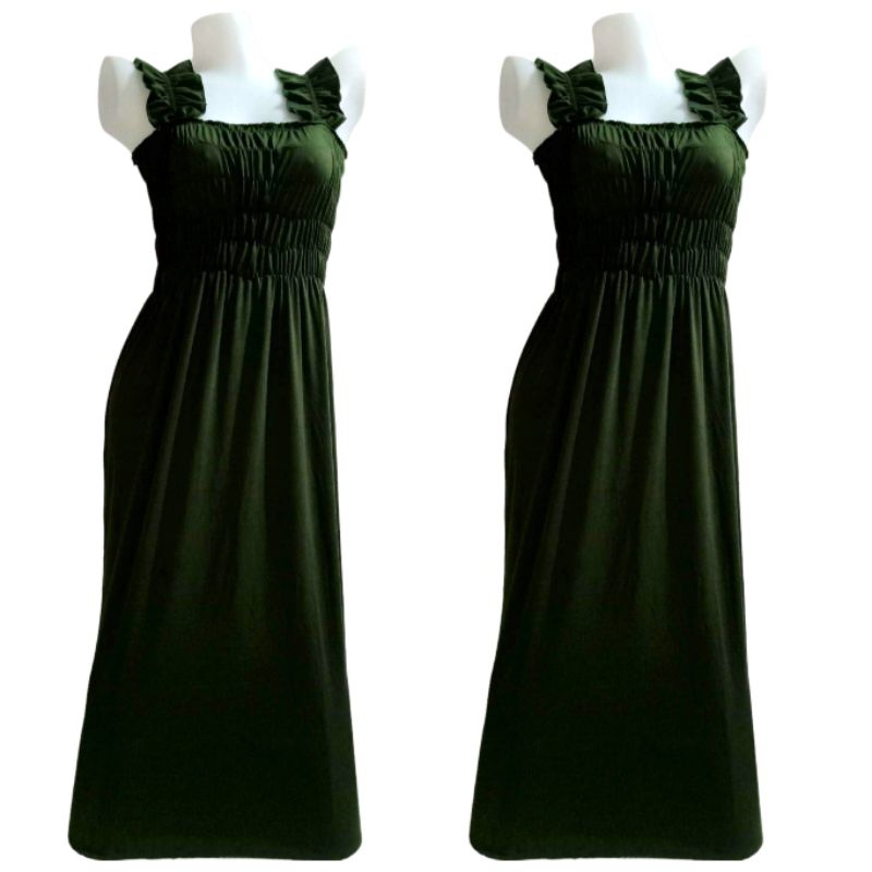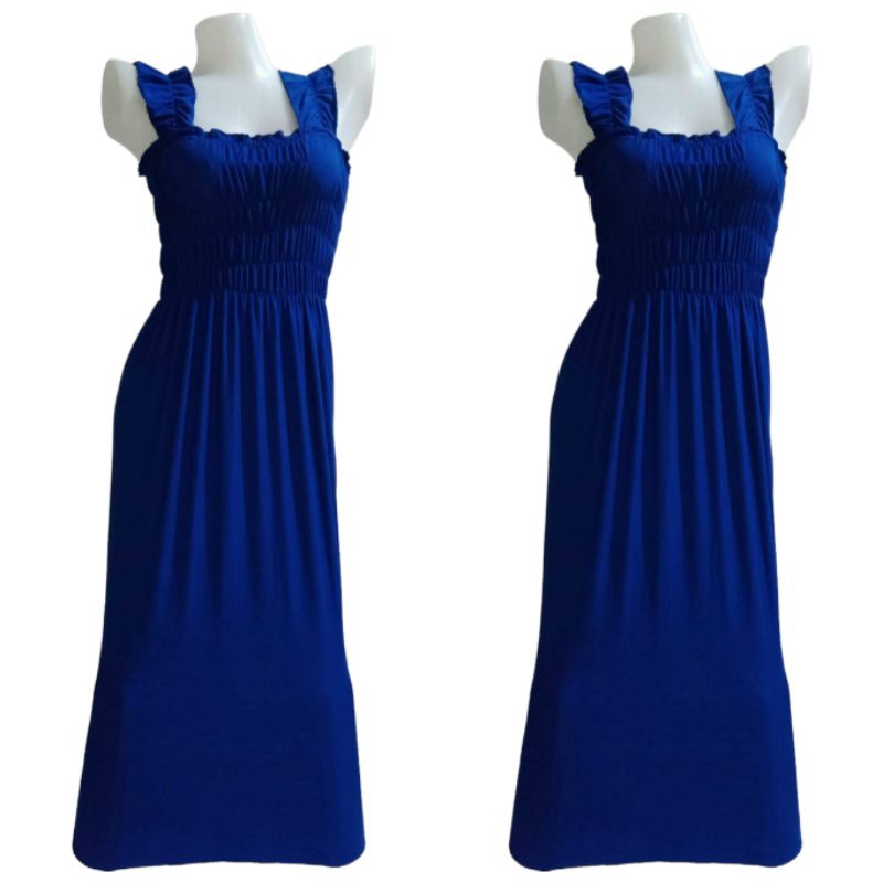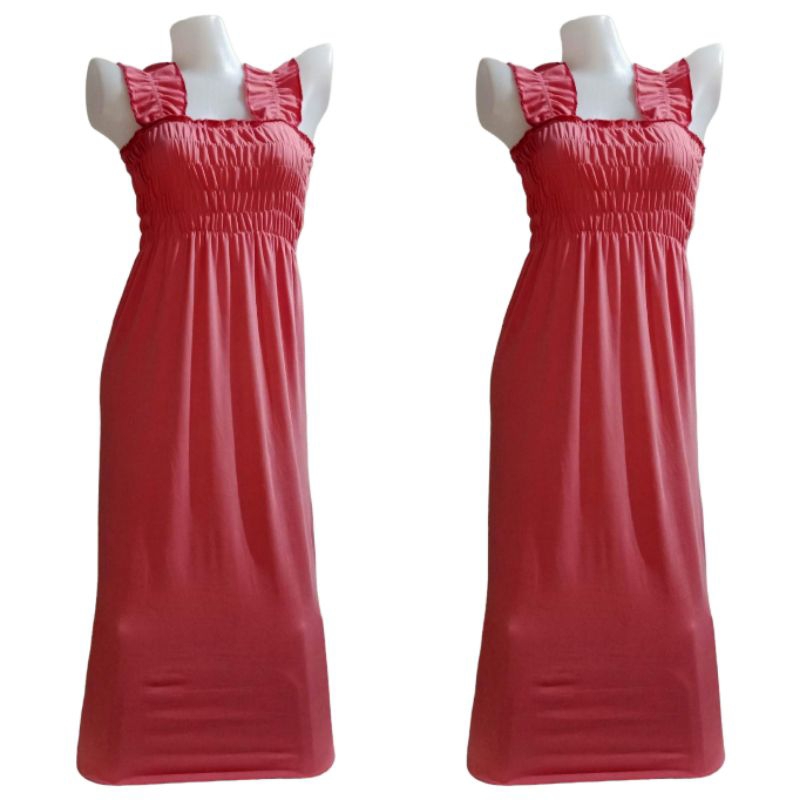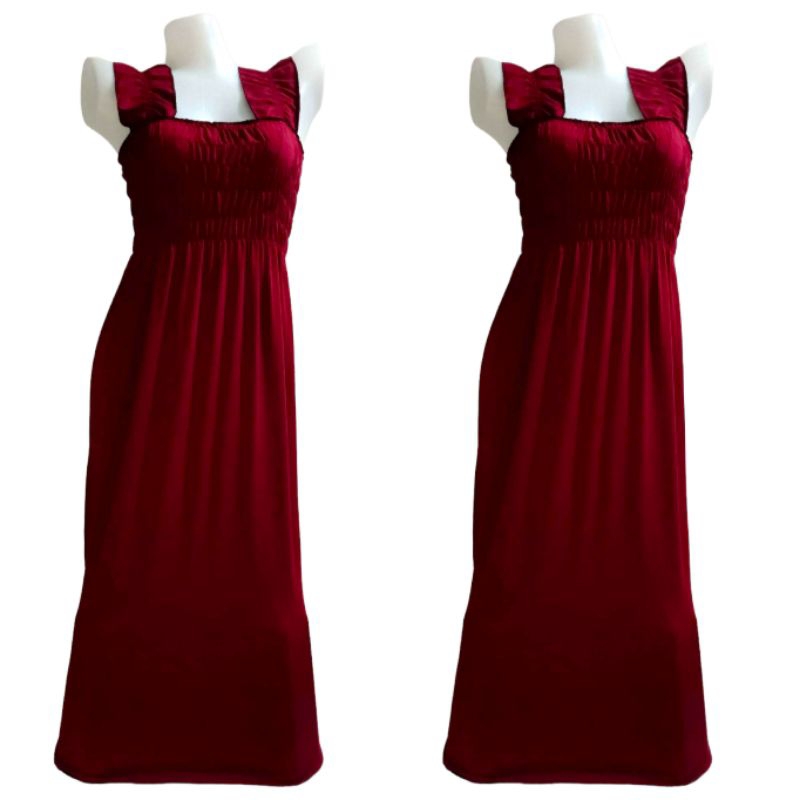 Long Smocking Ruffles Dress | Daster Pambahay | Maternity Dress | Cotton Spandex | Below the knee