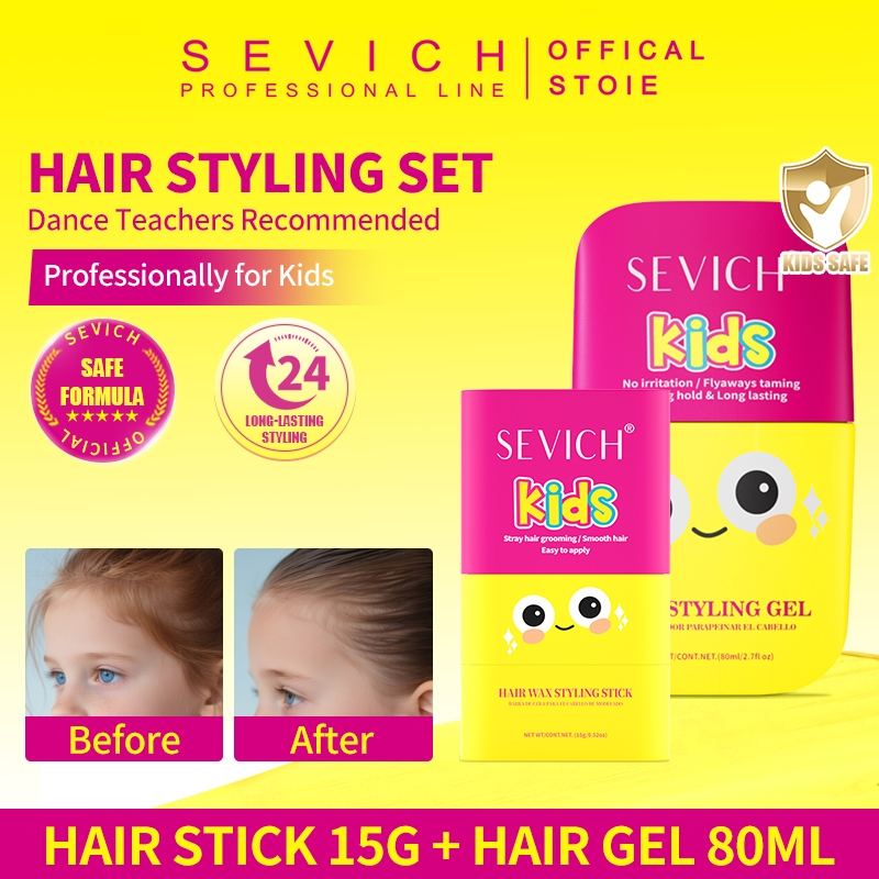 SEVICH Kids Hair Sleek Stick With Brush Hair Wax Hair Styling Stick Long Lasting Hair Stick Hair Gel Set