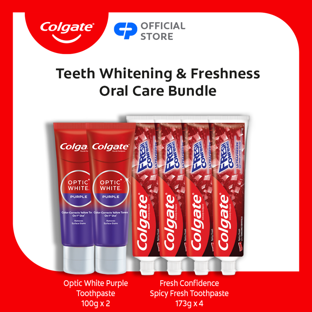COLGATE Purple Whitening Toothpaste 100g x2 + Fresh Confidence Spicy Fresh Toothpaste x4