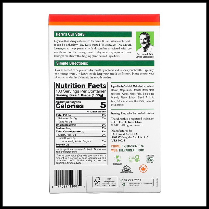 ☏ Therabreath Lozenges Dry Mouth (Sold per box - 100 pcs)