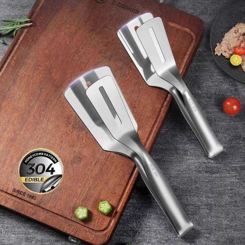 German and Tongs 2-in-1 304 Stainless Steel Fish Frying Tool Multifunctional Pancake Food Steak