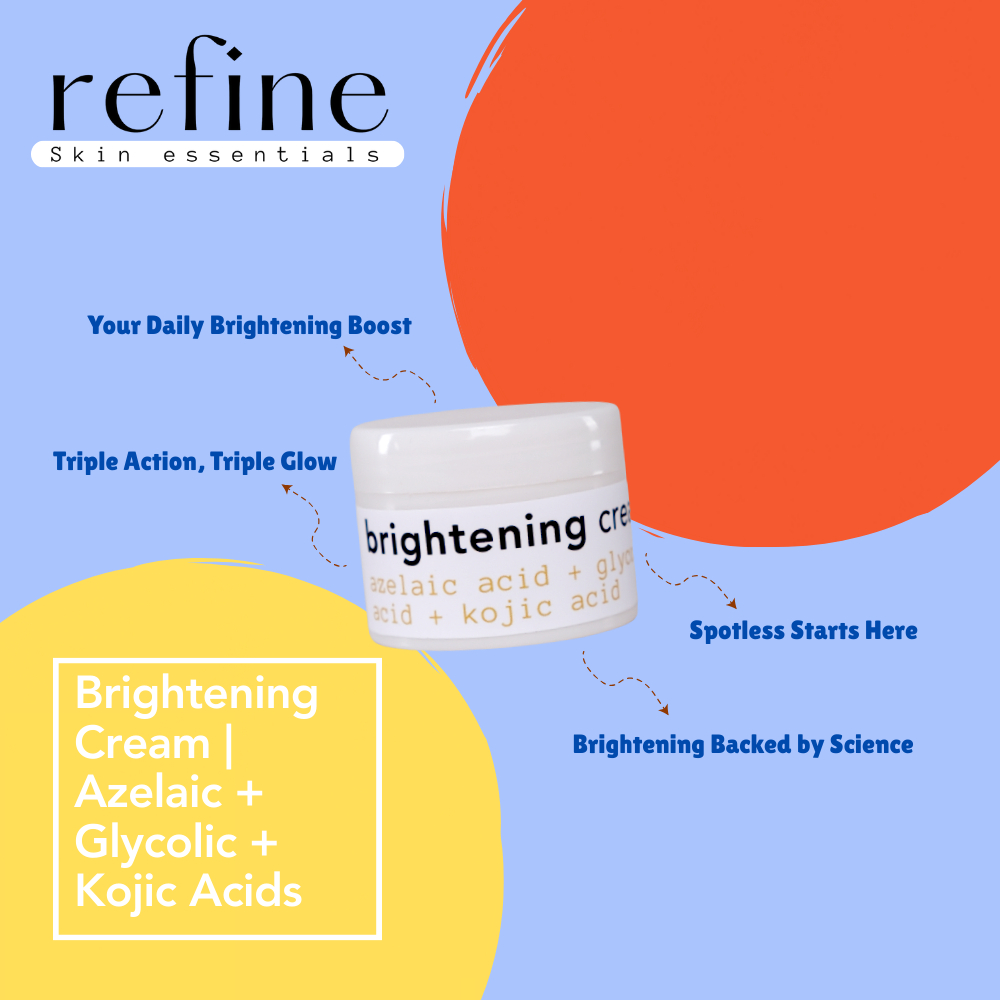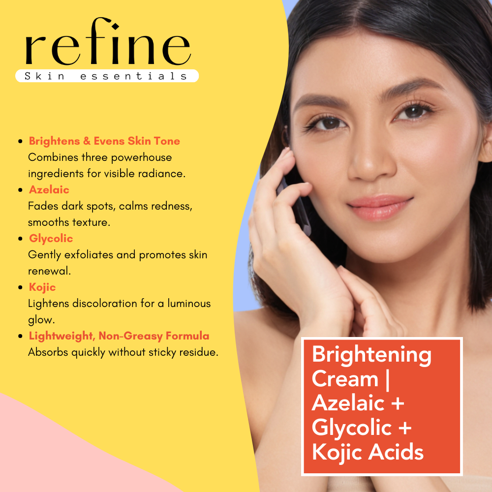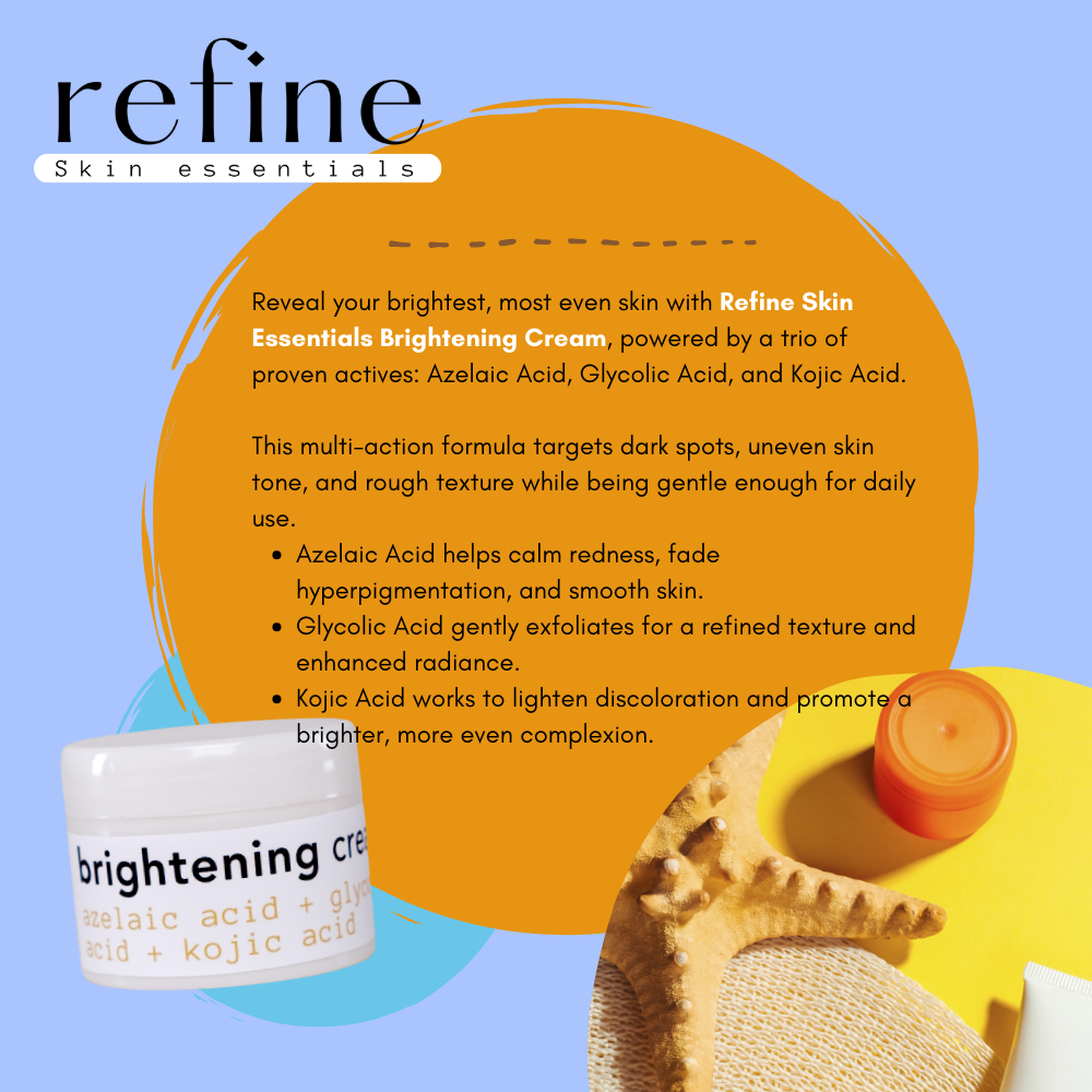 Refine Skin Essentials Brightening Cream | Azelaic Acid, Glycolic Acid, Kojic Acid | Even Skin Tone