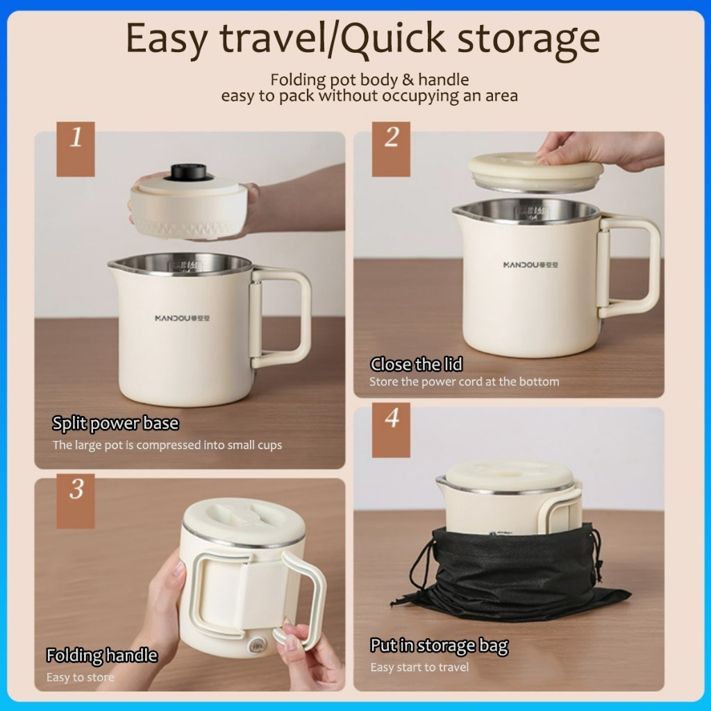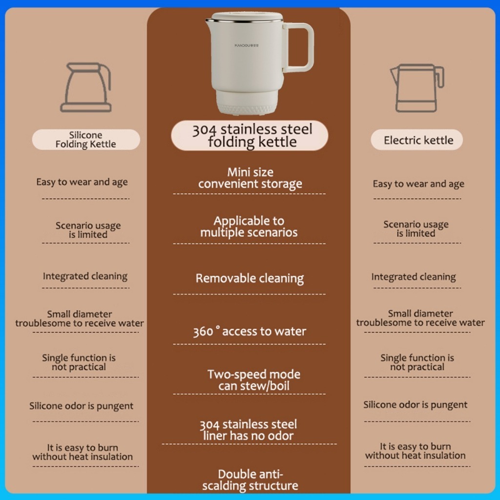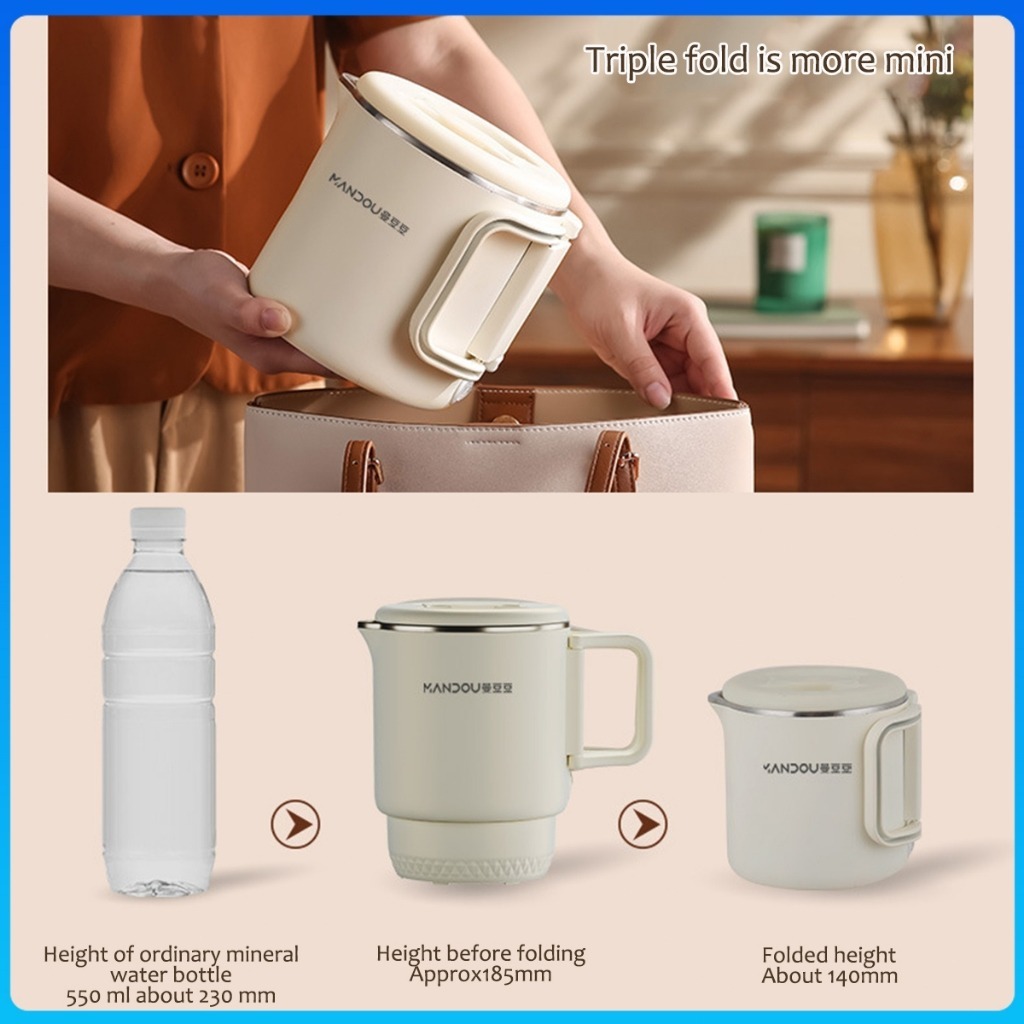 800ml Folding 304 Stainless Electric Kettle Small Heater Portable Mini Kettles For Travel Dormitory