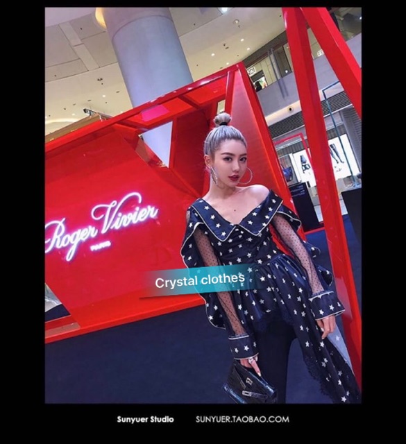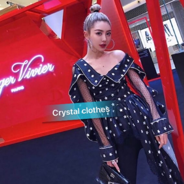 Korean Star Pattern Off-Shoulder Top Sign Work