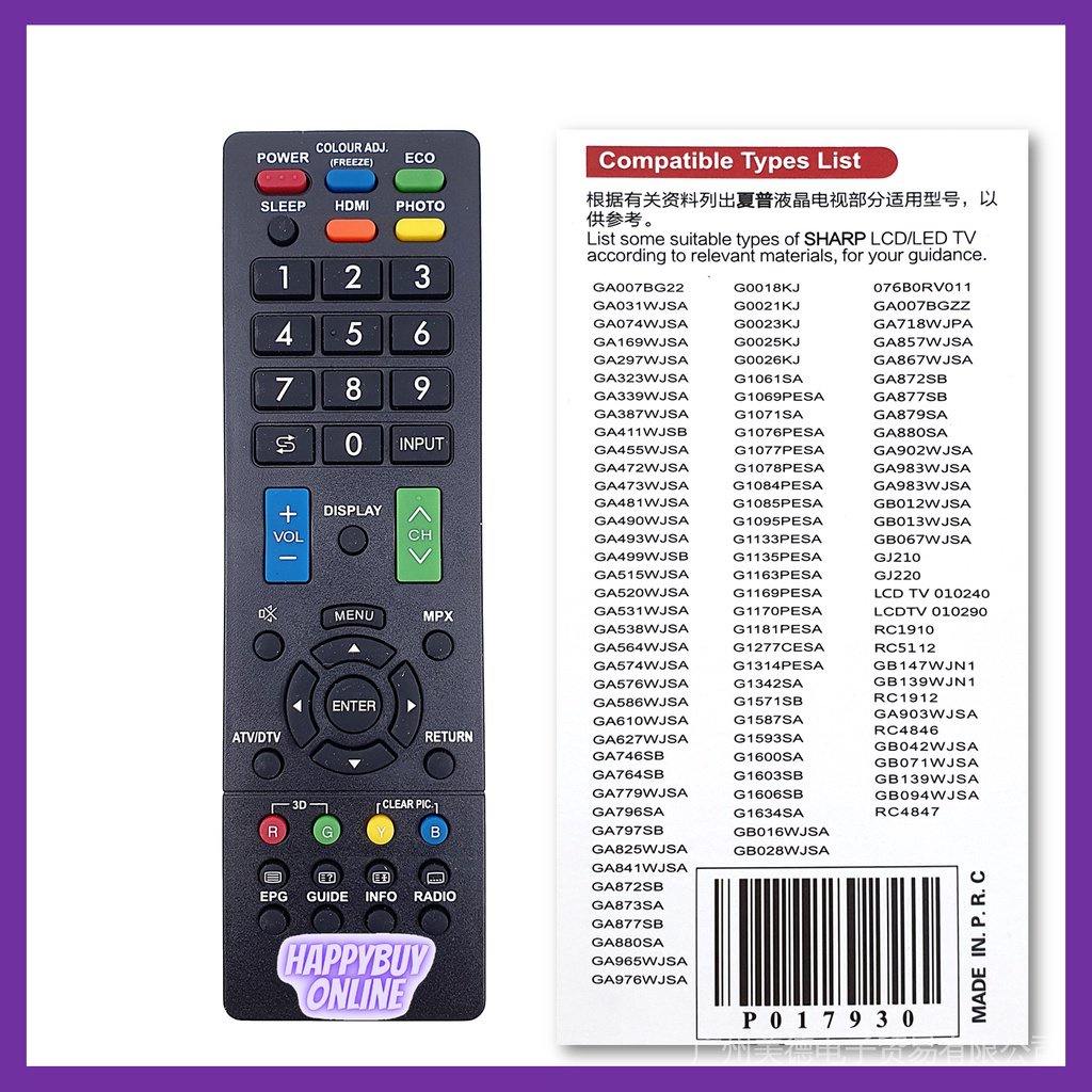 Offer Sharp Aquos LED TV remote control RM-L1238 Sharp Aquos flat panel remote TV replacement