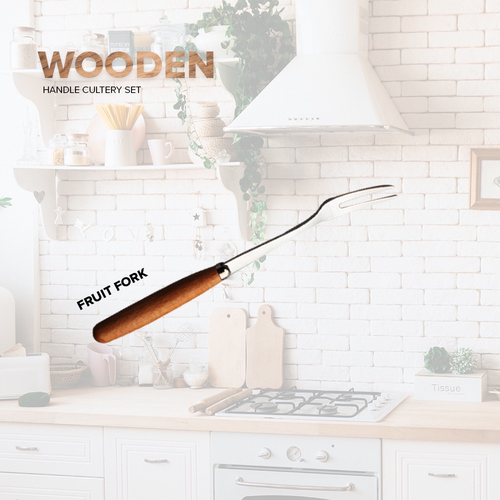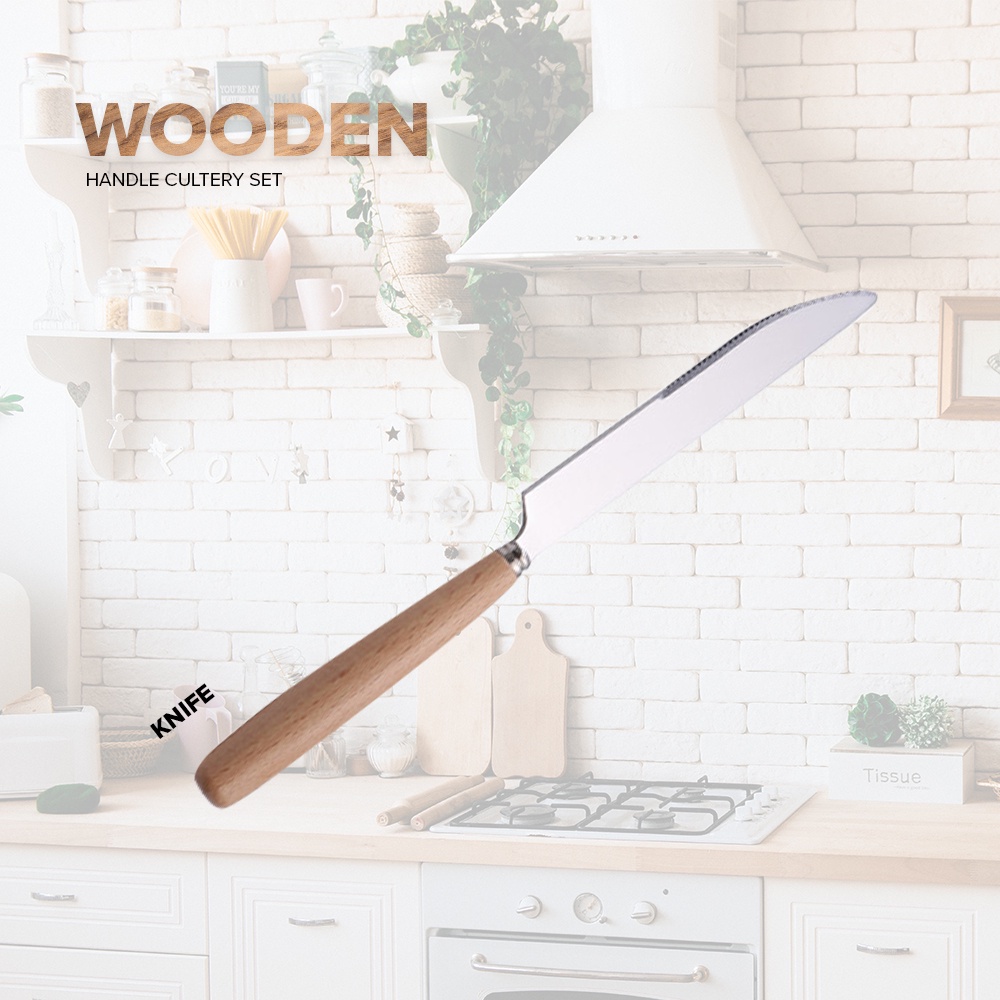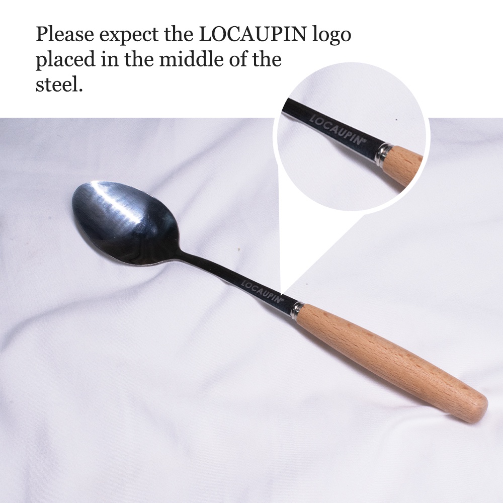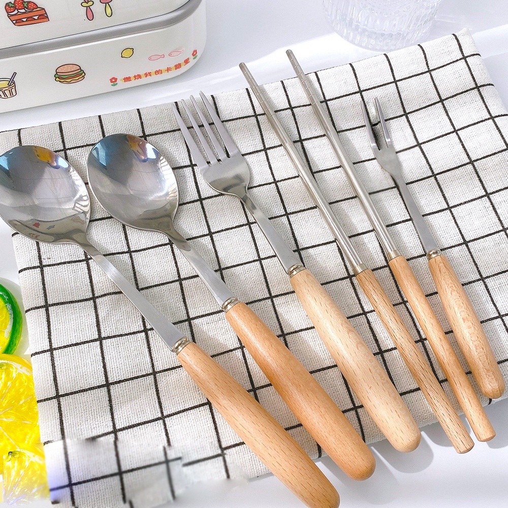 LOCAUPIN Wooden Handle Stainless Steel Cutlery Spoon Two Prong Fork Fruit Knife Chopsticks Teaspoon