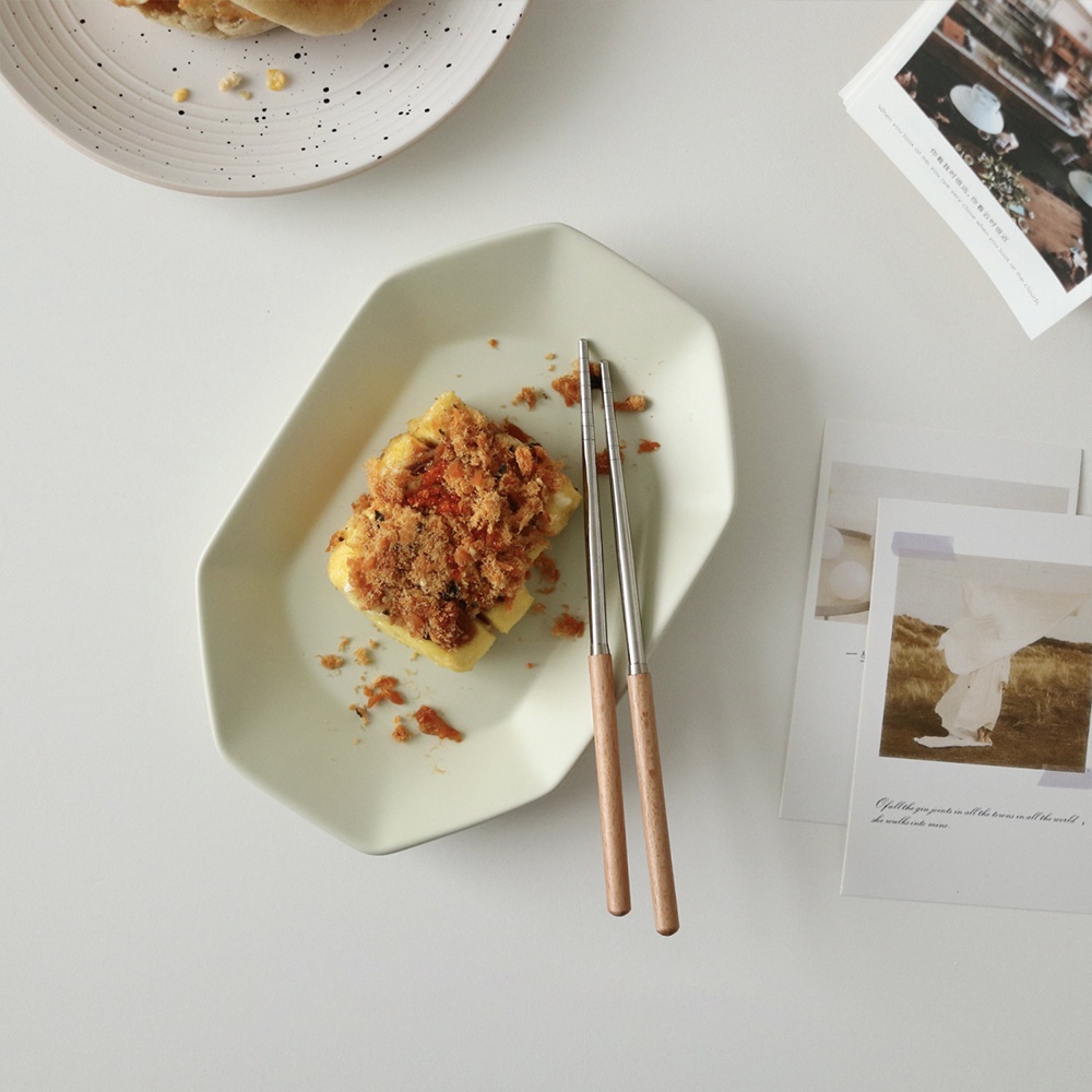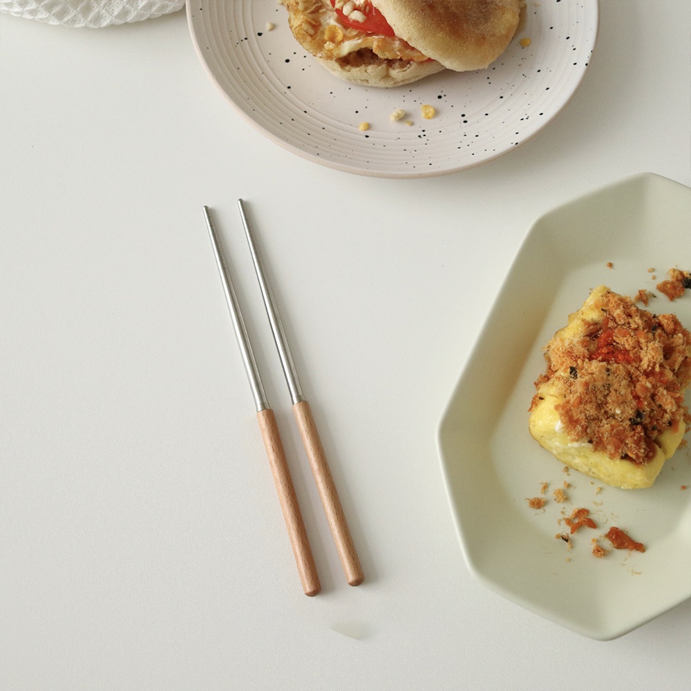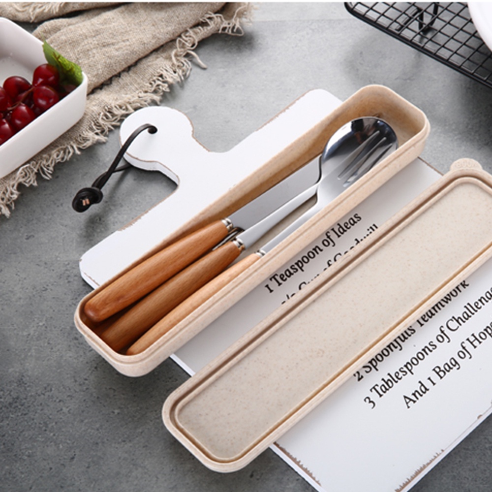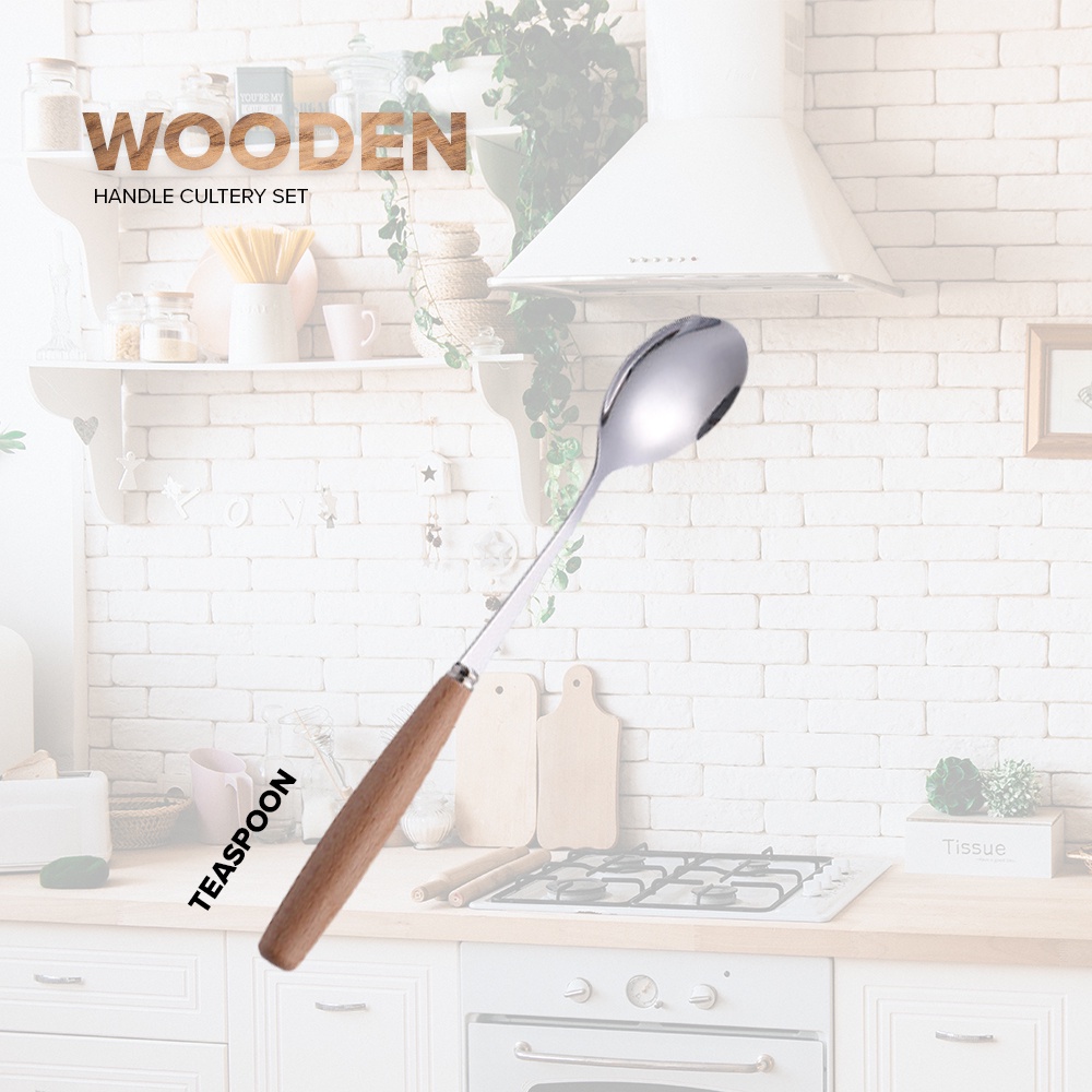 LOCAUPIN Wooden Handle Stainless Steel Cutlery Spoon Two Prong Fork Fruit Knife Chopsticks Teaspoon