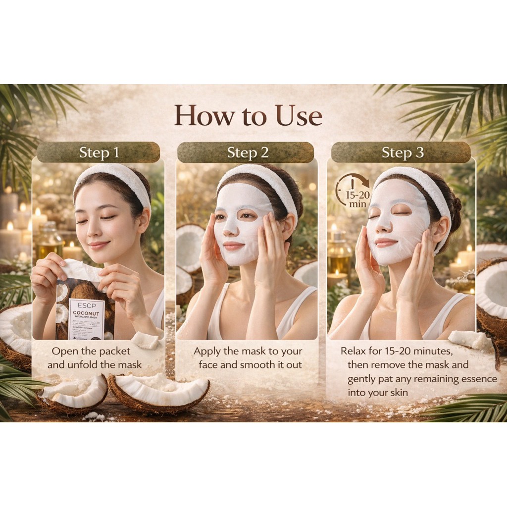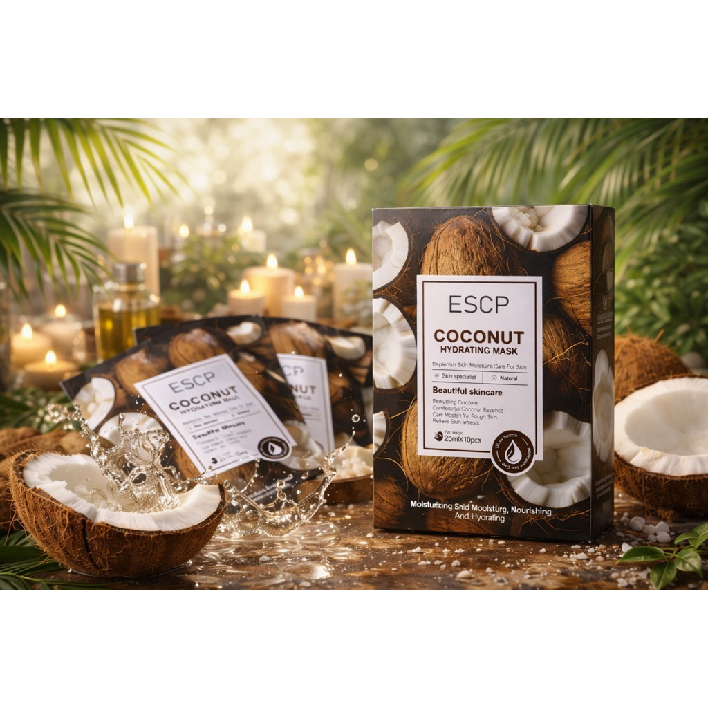 ESCP Coconut Hydrating Mask (Coconut) Oil-Based Facial That Increases Moisture. 1 Box Contains 10 Sheets.