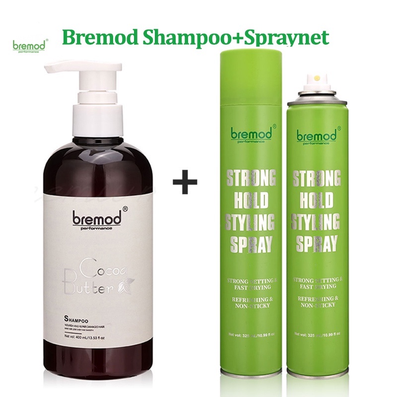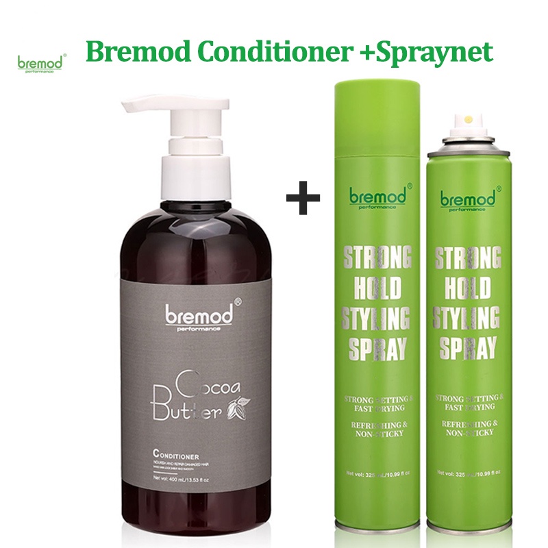Bremod Conditioner Shampoo 400ml+Bremod Hair Spraynet 325ml Hair Wash Spray Net Strong Hold Styling