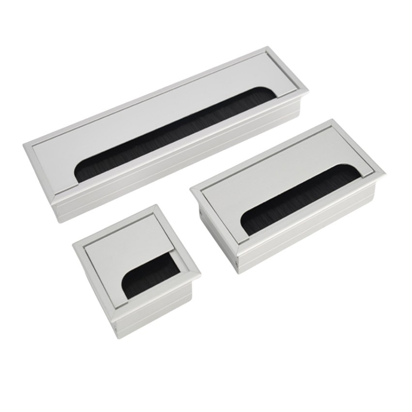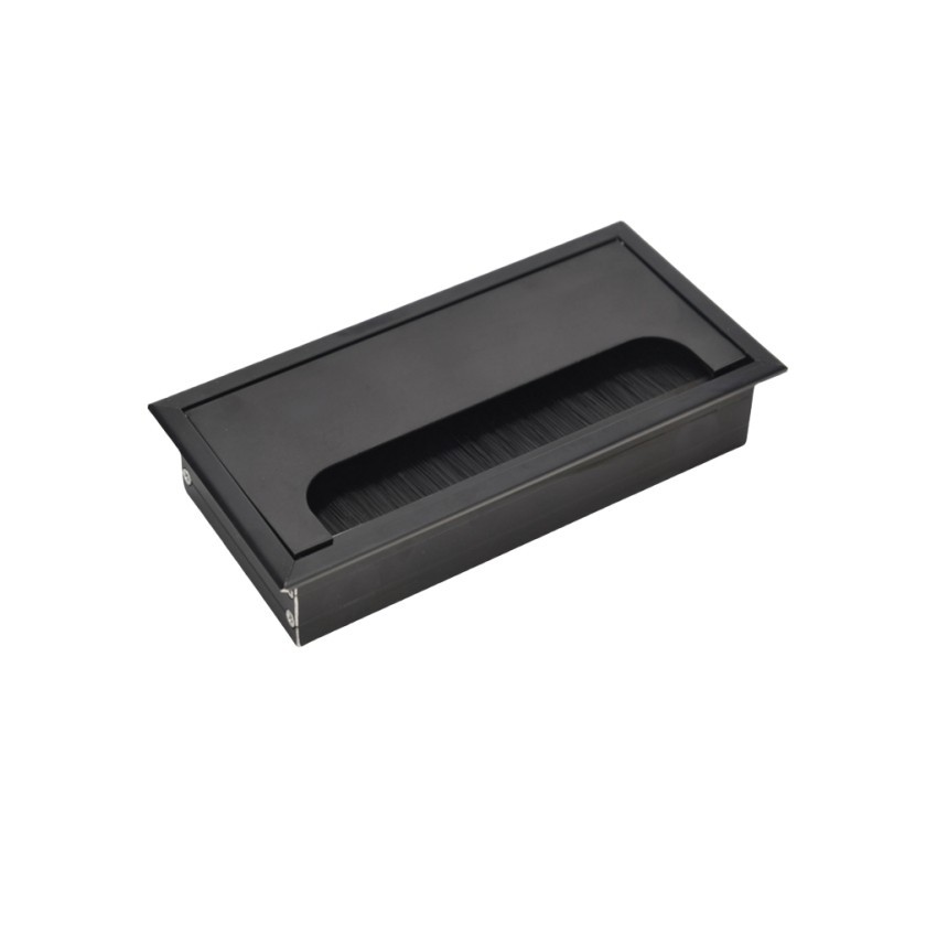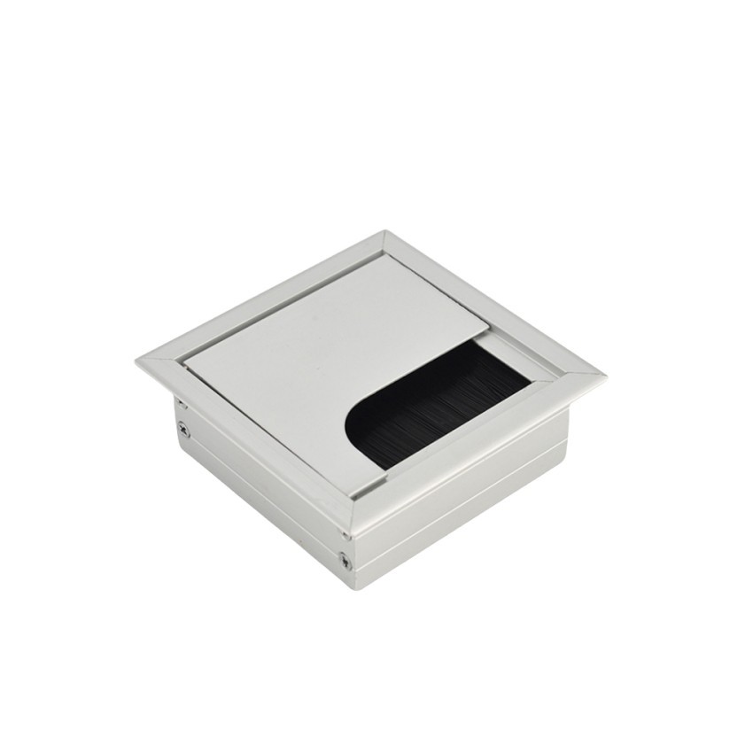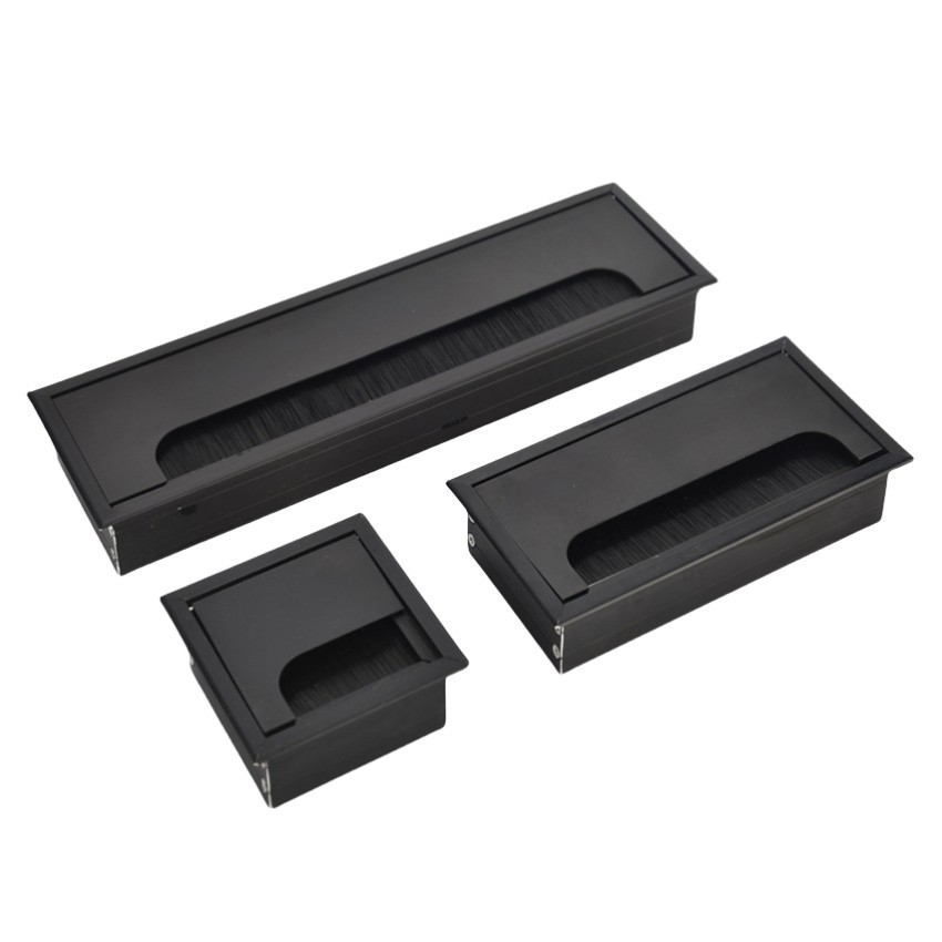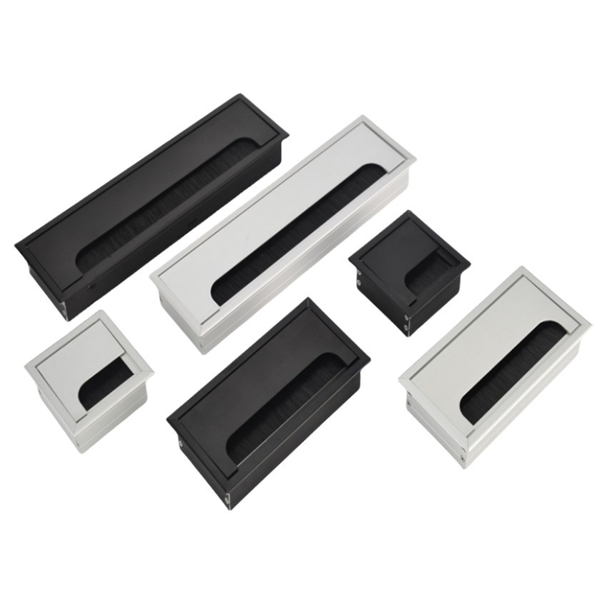 Office Hardware Matt Rectangle Wire Cable Grommet Aluminum Square Table Desk Grommet Black/Silver