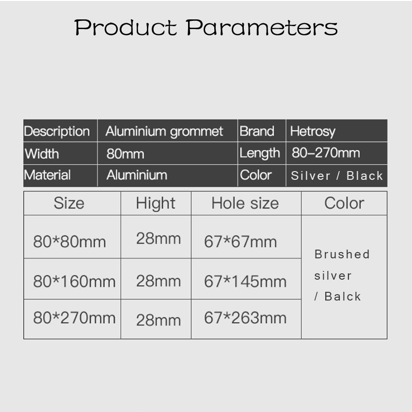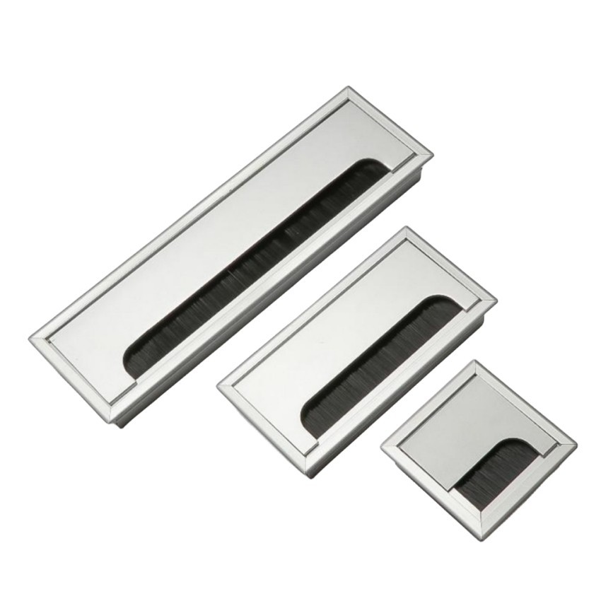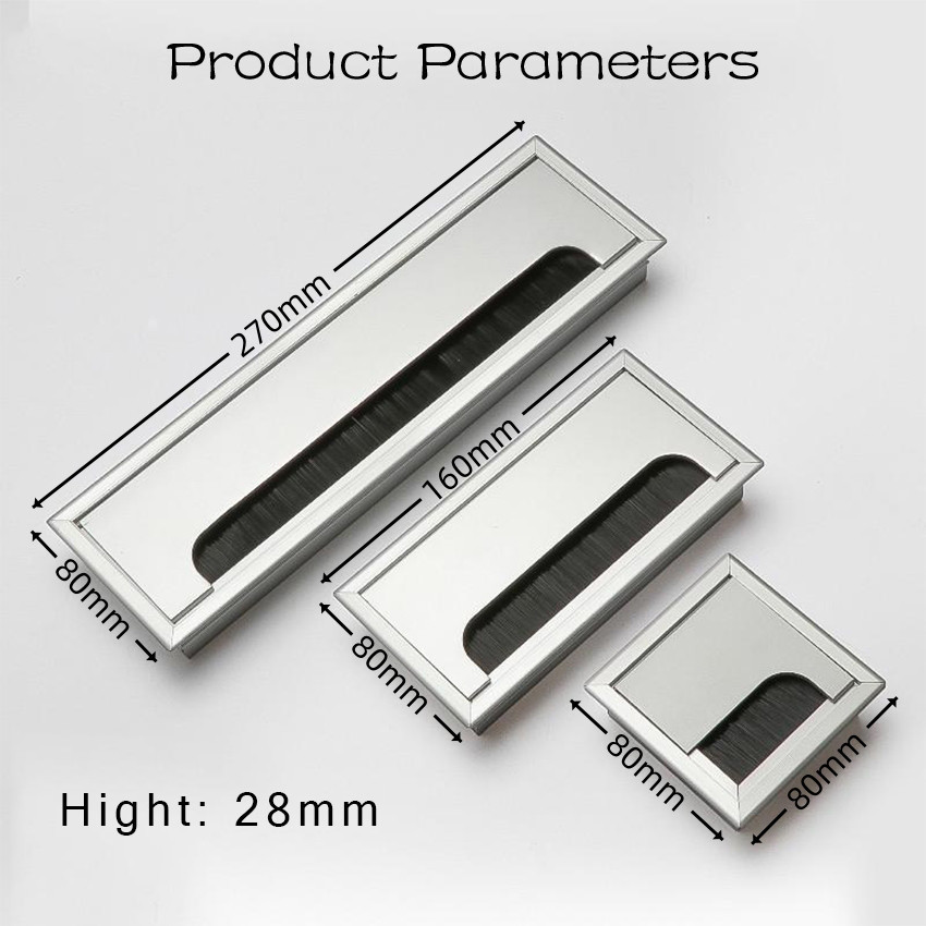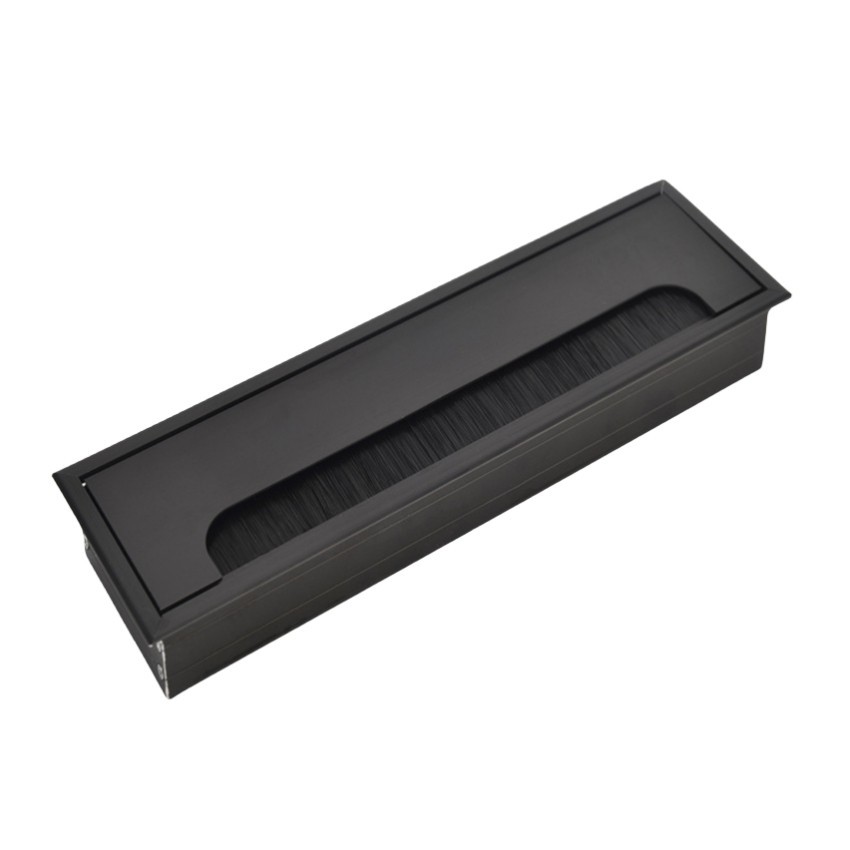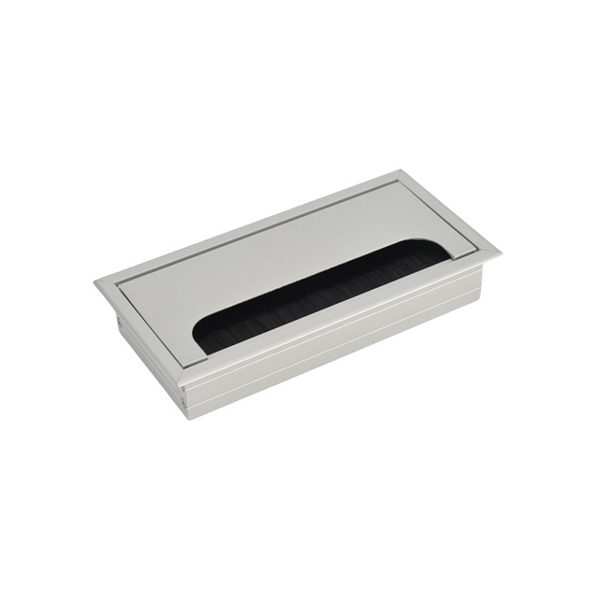 Office Hardware Matt Rectangle Wire Cable Grommet Aluminum Square Table Desk Grommet Black/Silver