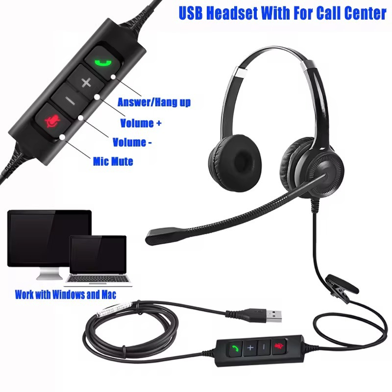 Laptop HN820 USB Headset Rotating Noise Canceling Mic Digital Stereo Sound Wired On Ear Headphone