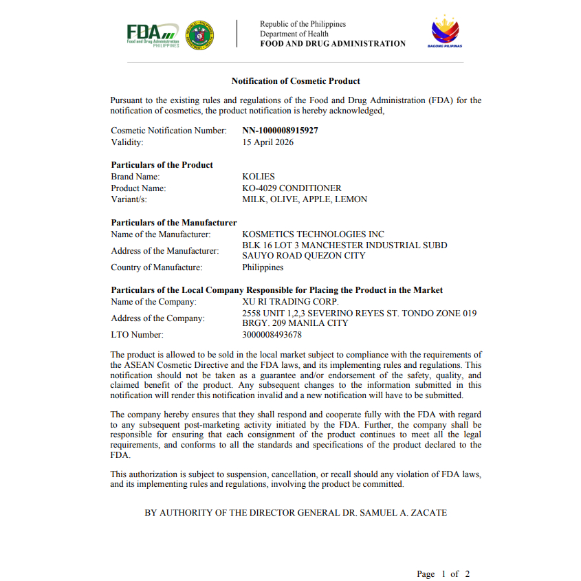 AUTHENTIC KOLIES HAIR CONDITIONER APPLE OLIVE LEMON