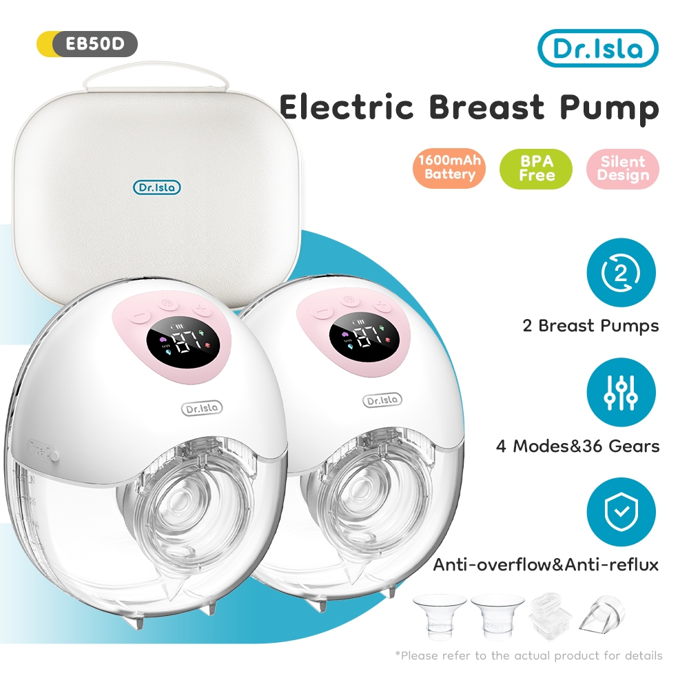 Dr.isla 2pcs Wearable Breast Pump Hands Free 4 Modes & 36 Levels 27mm Flange With Storage Box EB50