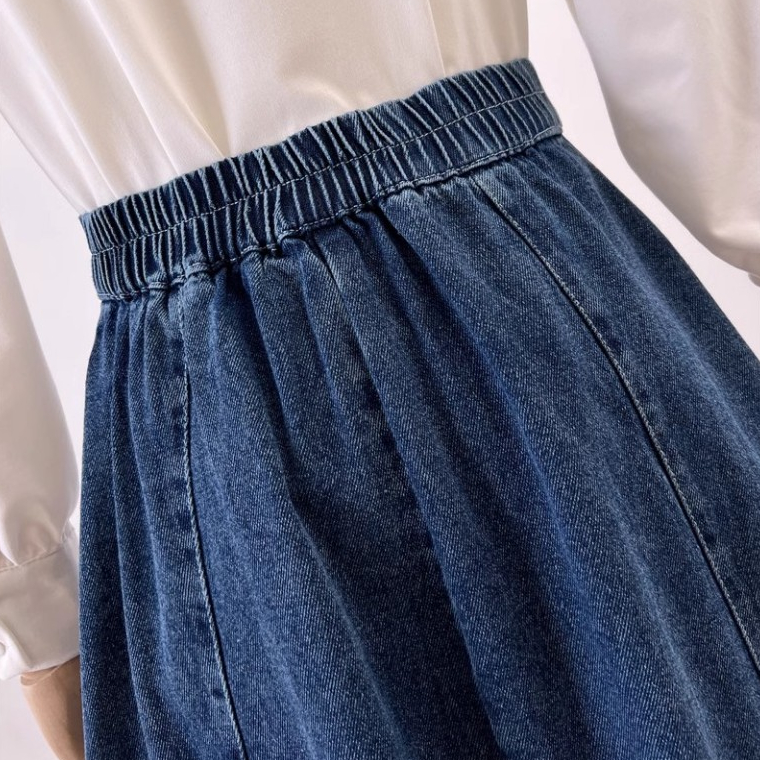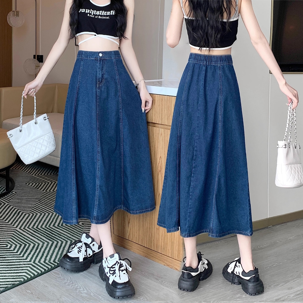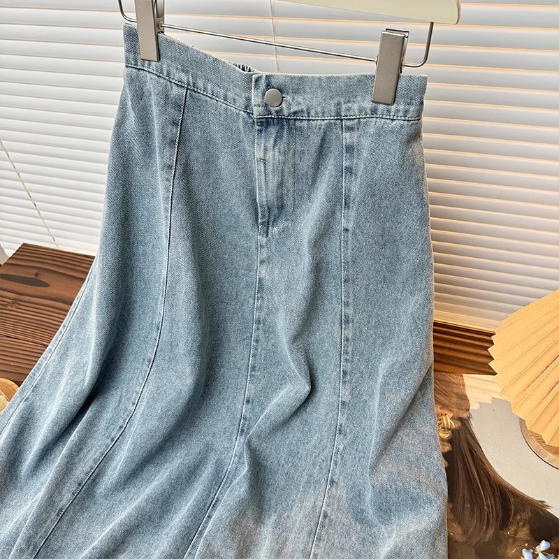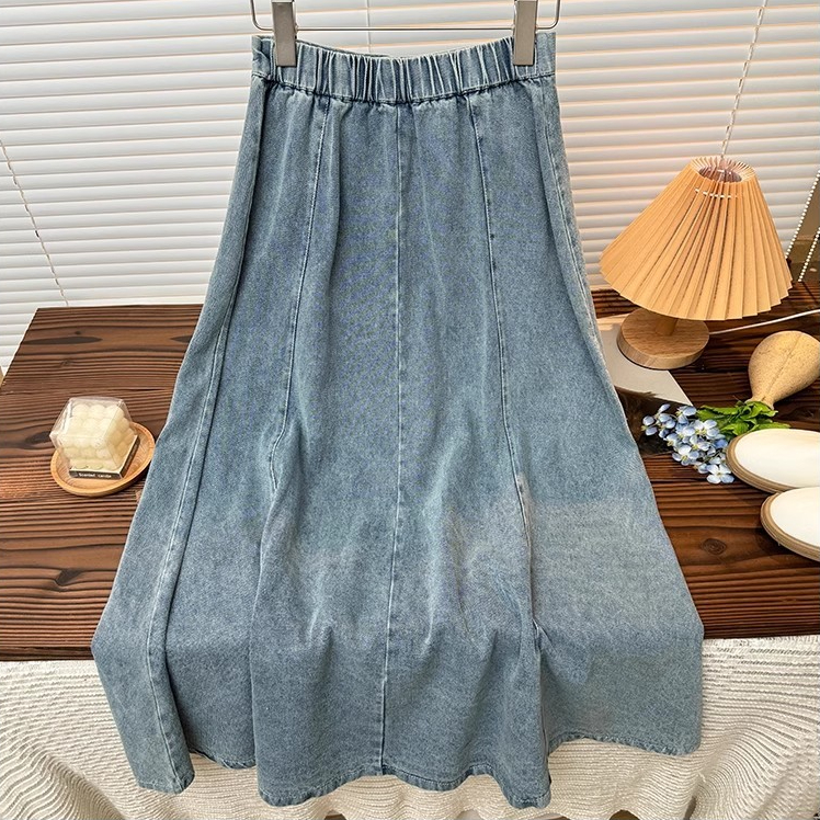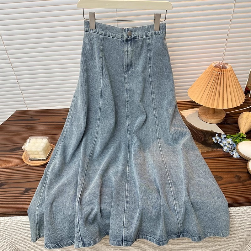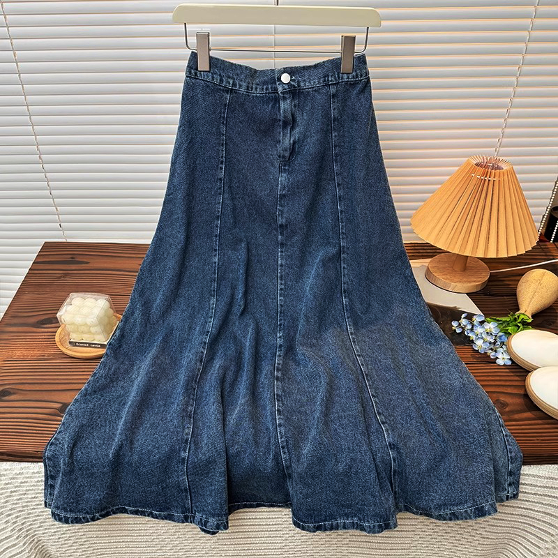XS-6XL~Long denim skirt for women MIDI plus size blue high waist A-line fishtail bigsize cargo maong