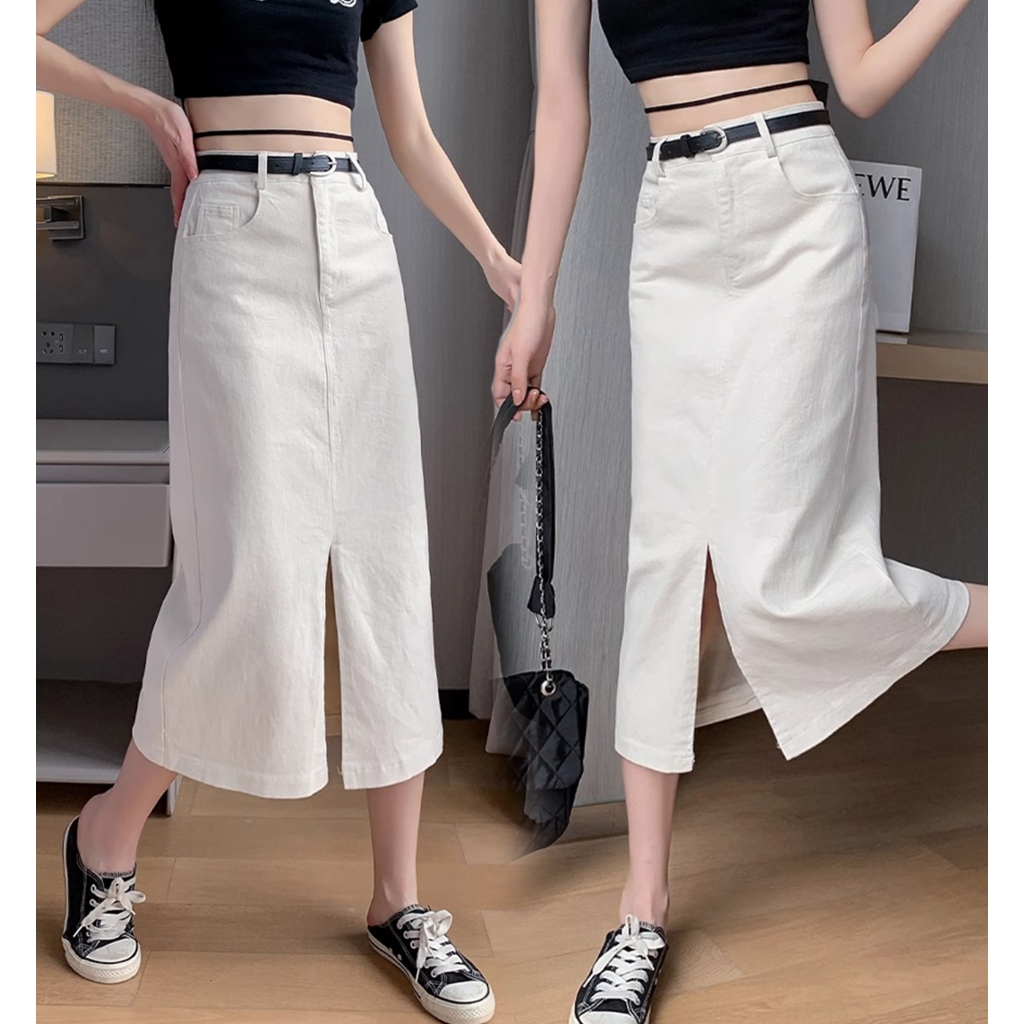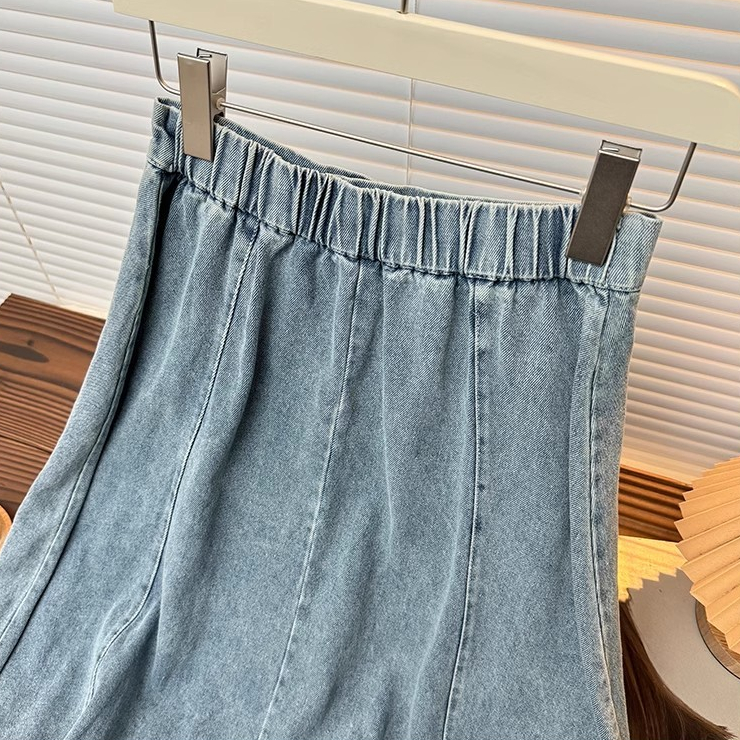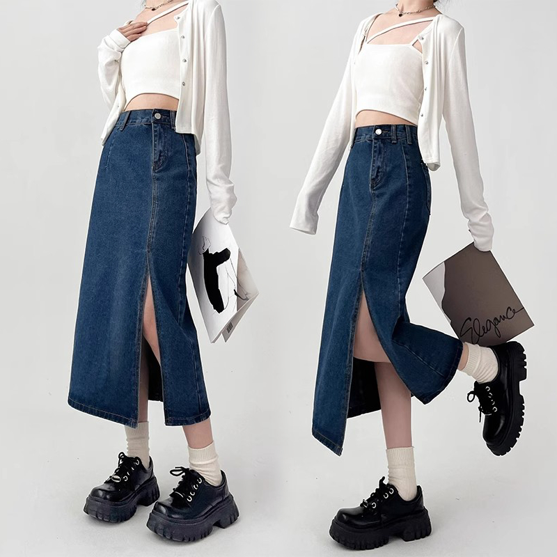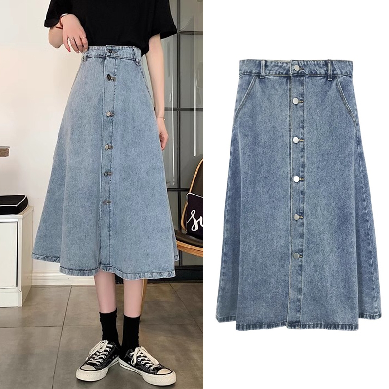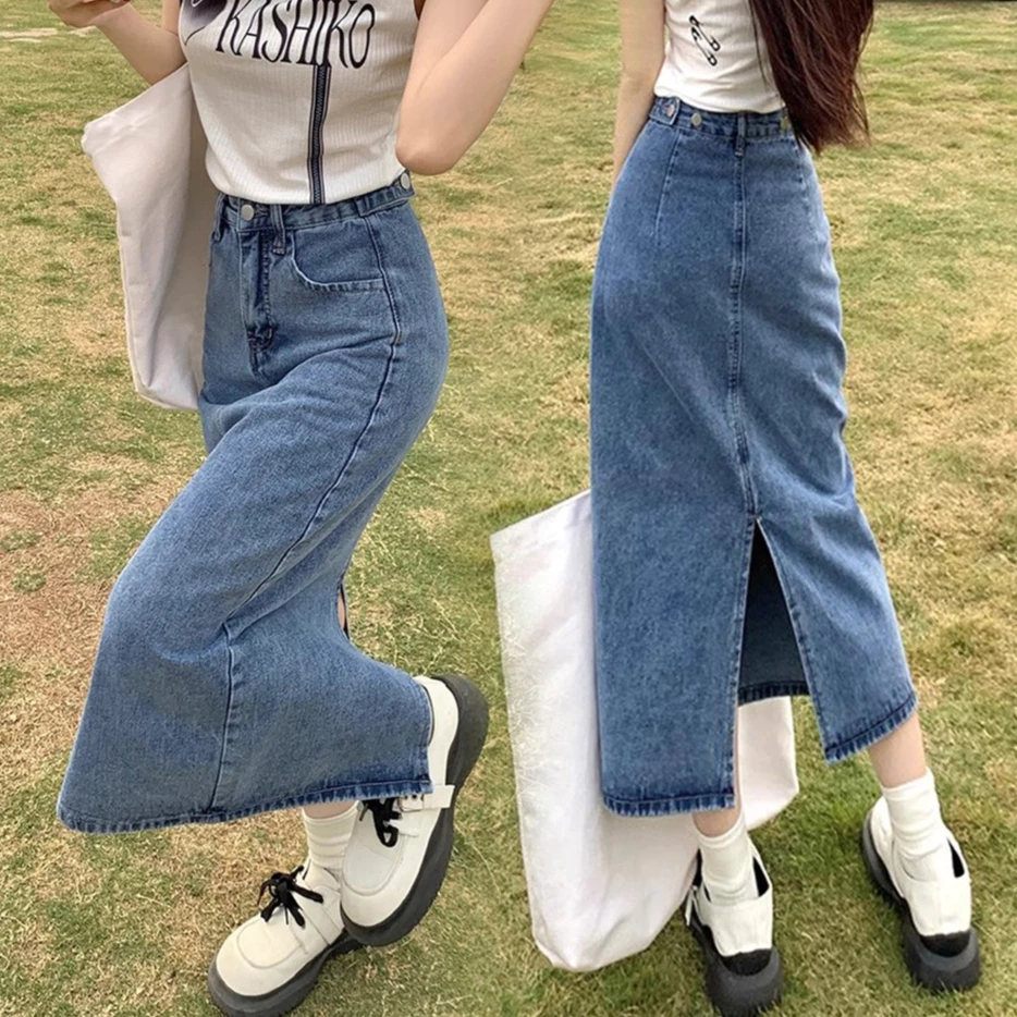 XS-6XL~Long denim skirt for women MIDI plus size blue high waist A-line fishtail bigsize cargo maong