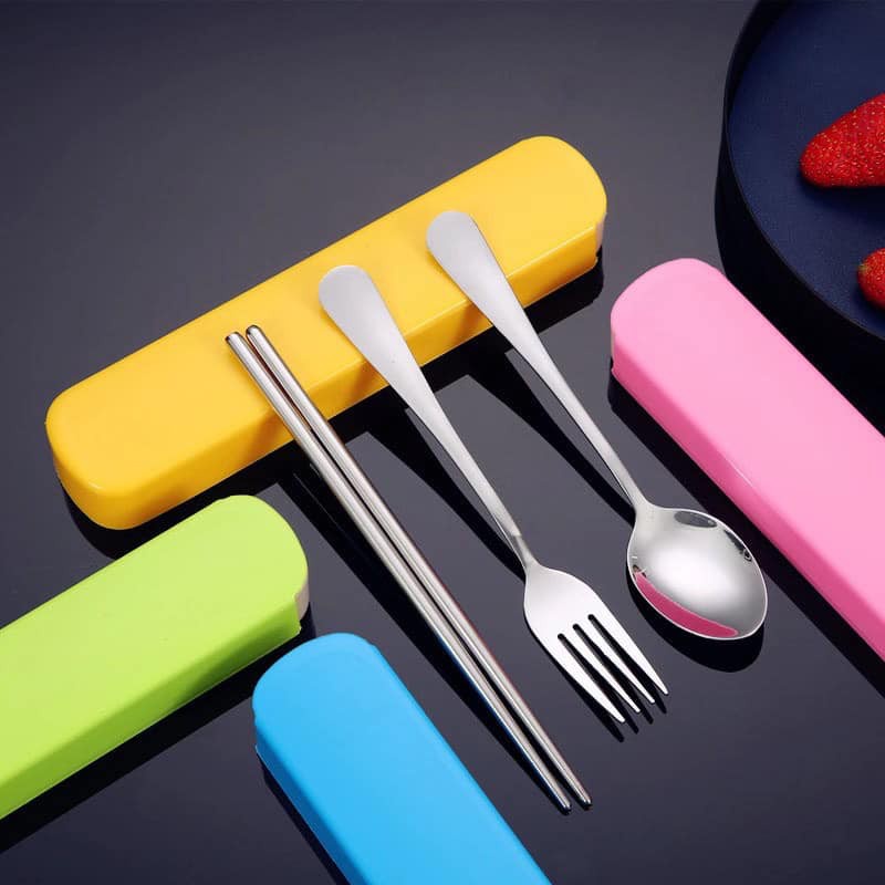 Stainless Utensils Spoon, Fork With Chopsticks Set and Case Organizer