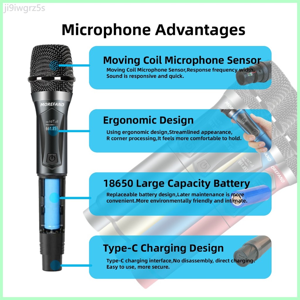 Value 108V2 GRAY/RED/BLUE Professional Wireless Microphone UHF Handheld Rechargeable Dynamic Microp