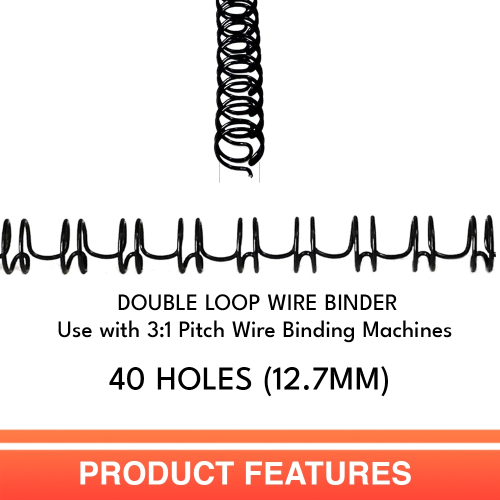 Officom 100pcs Double Loop Wire Binder F4 Size 40 Holes 120 Sheets Capacity - Black, Blue, White
