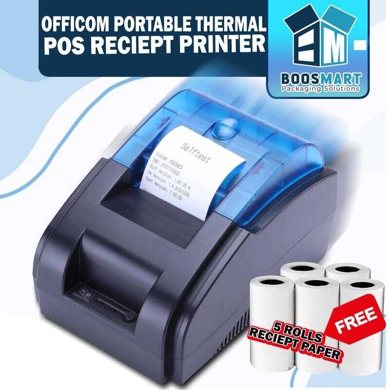 Officom 58H Portable Thermal POS Receipt Printer Bluetooth & USB 58Mm With Free 5 Rolls Of Rece