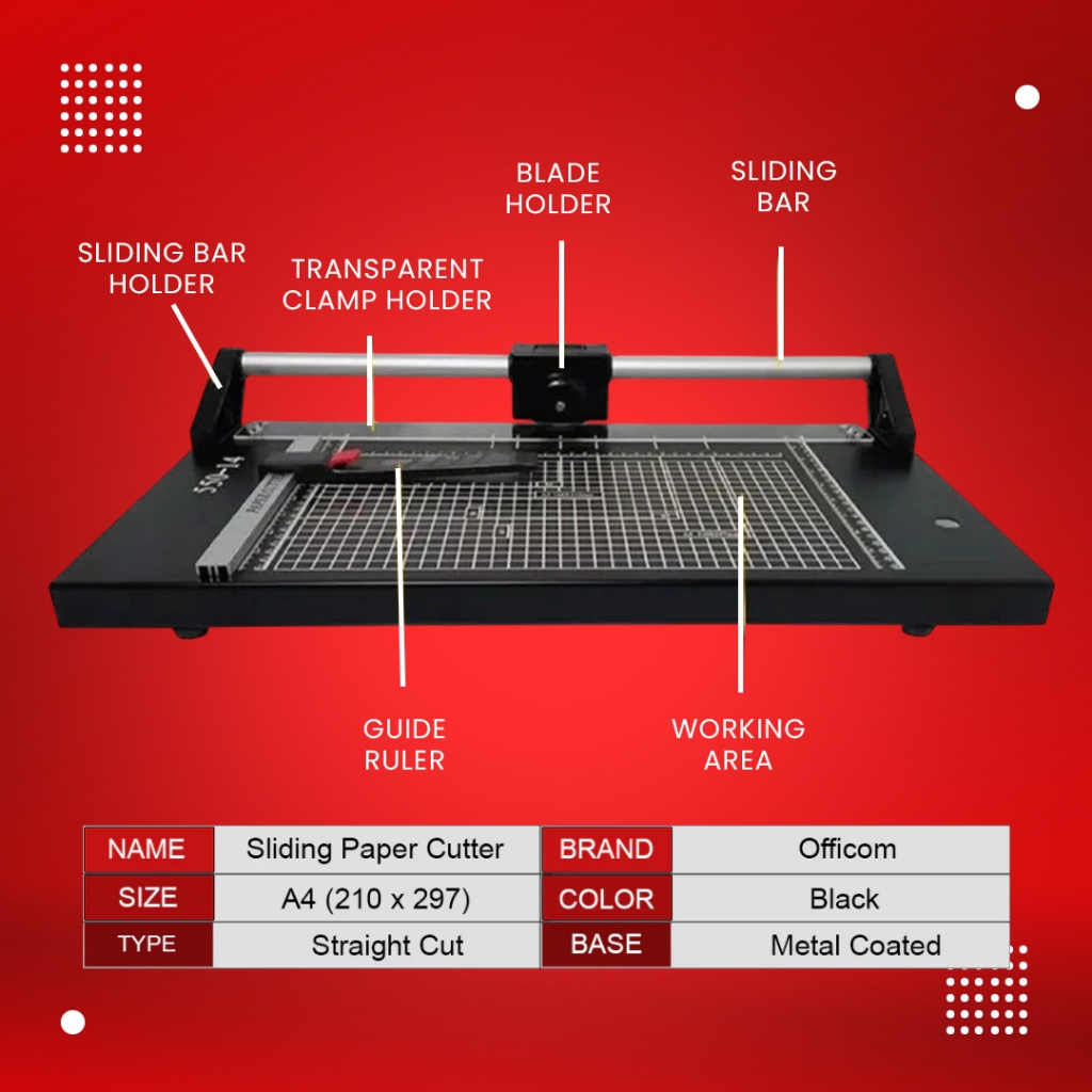 Officom A4 Heavy Duty Sliding Steel Base Paper Cutter High Quality Cutter
