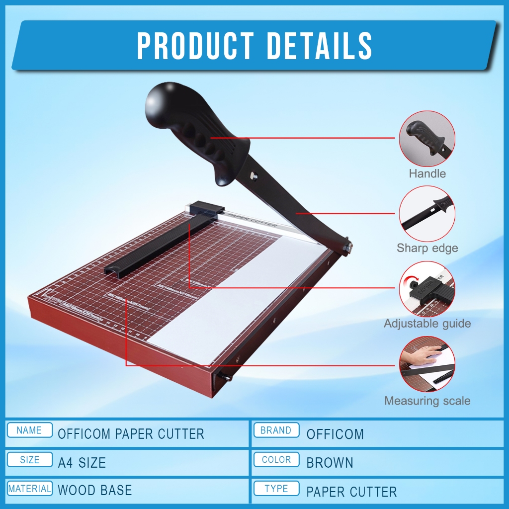 Officom A4 Paper Cutter Wood Manual Paper Cutter Office Photo Paper Trimmer Guillotine Cutter
