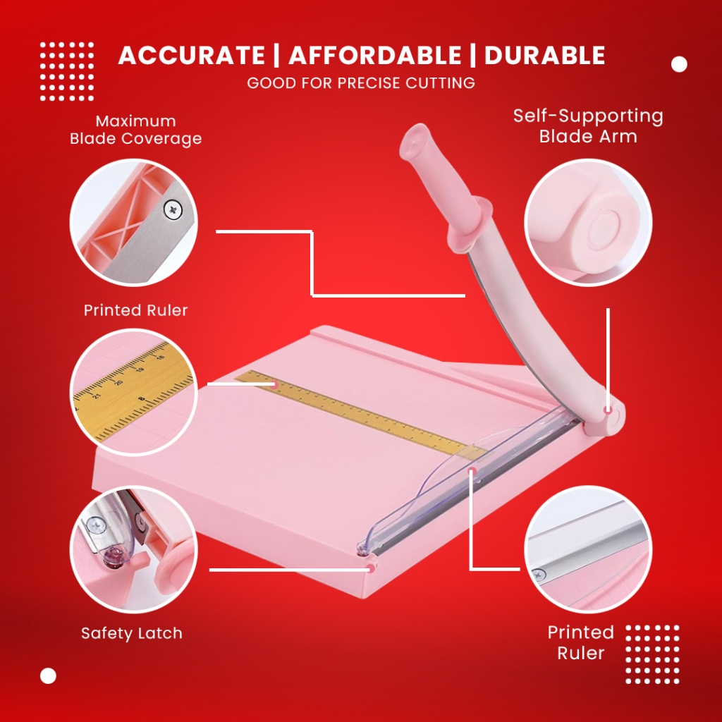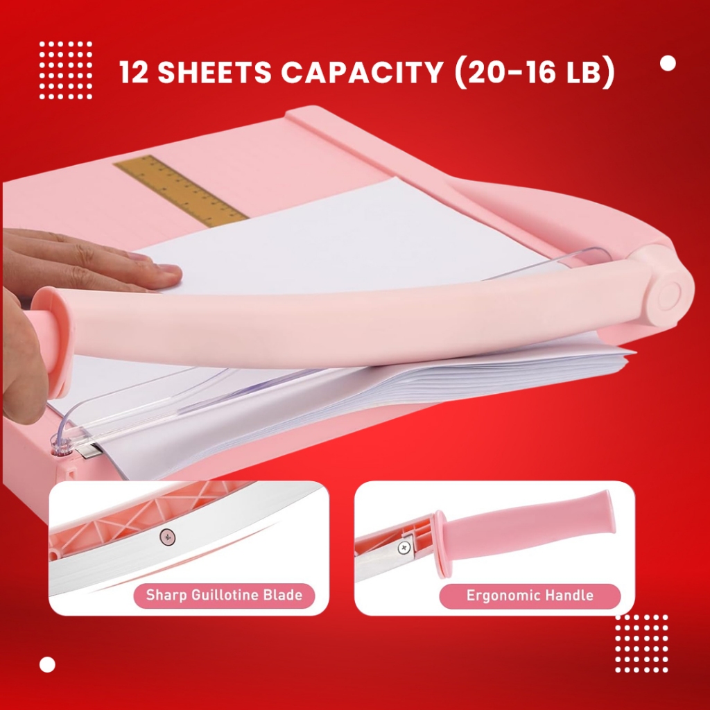 Officom A4 Pink Paper Cutter Durable Plastic Base Guillotine Manual Paper Trimmer (12" x12")