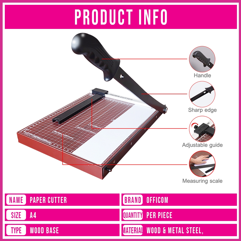 Officom A4 Wood Paper Cutter | Manual Heavy Duty Paper Cutter Guillotine Trimmer
