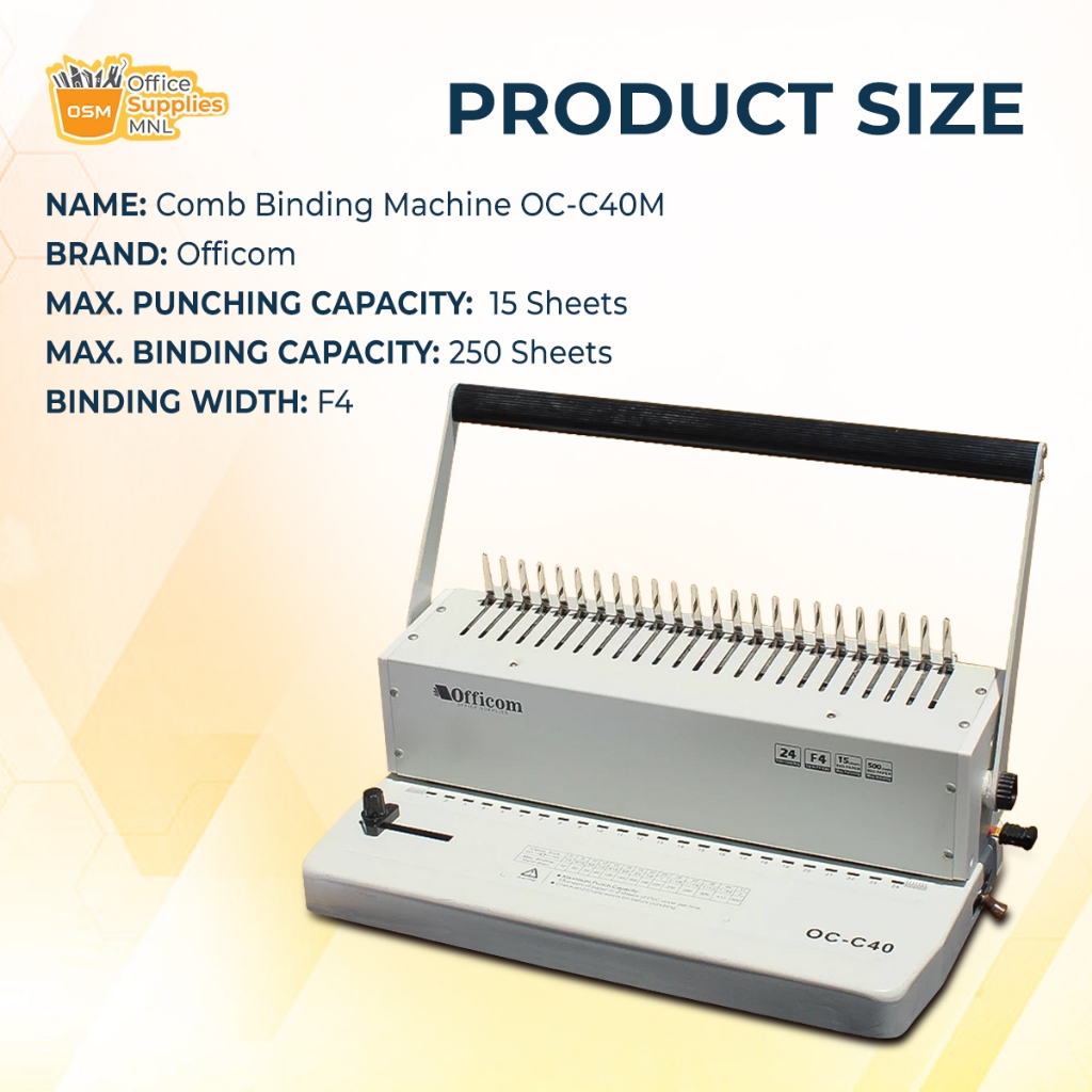 Officom Comb Binding Machine Legal / Long / F4 Size Heavy Duty Binding Machine