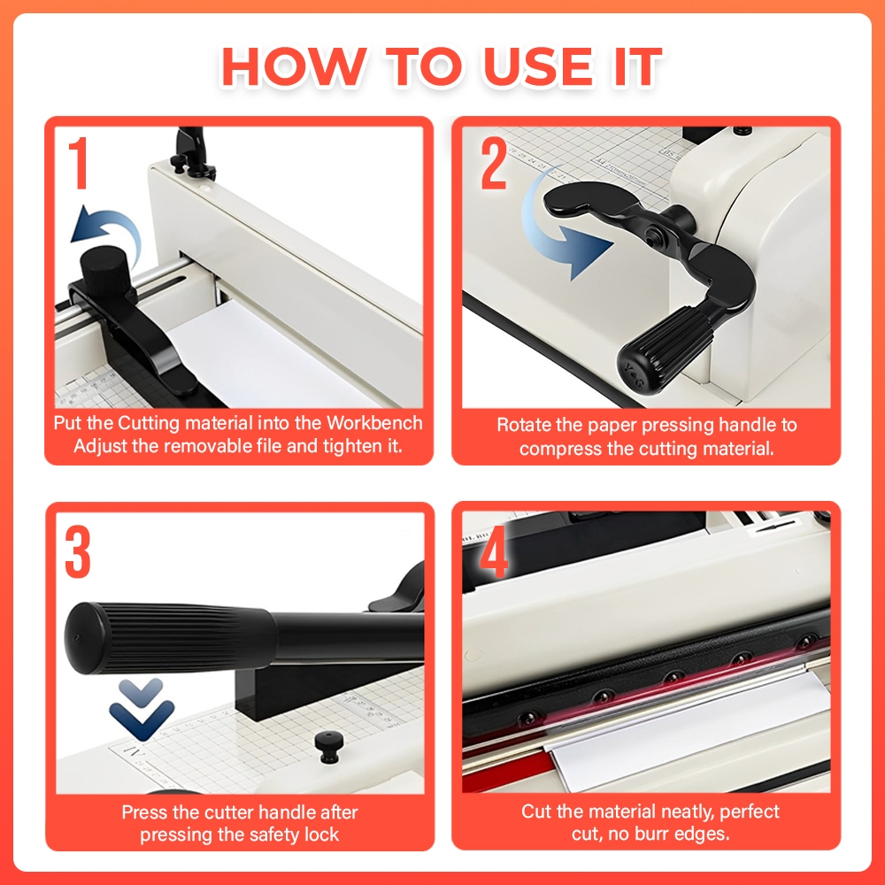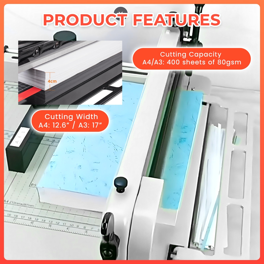 Ream Cutter A4 & A3 WHITE BLACK Heavy Duty Paper Cutter Sharp Precision 400sheets Capacity OFFICOM