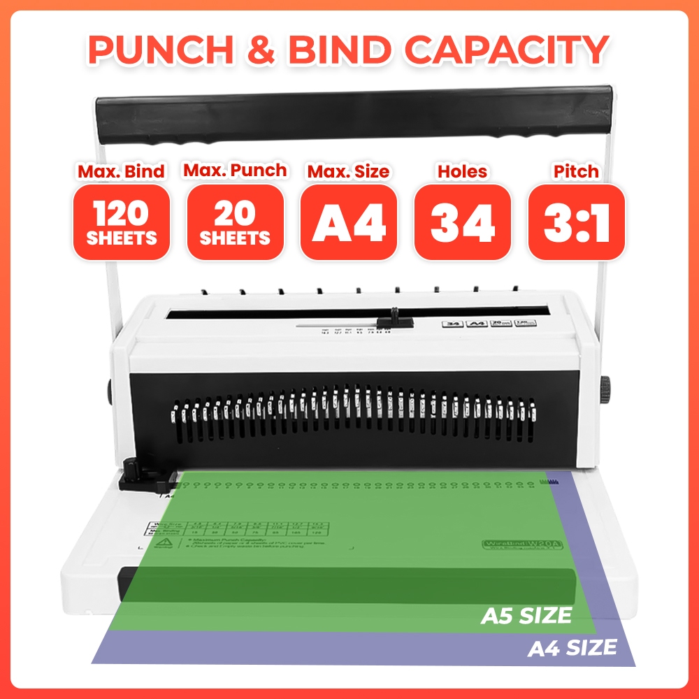 Officom Wire Binding Machine W20A A4 Heavy Duty 3:1 Binder Notebook Double Loop 34 Holes 20 Sheets