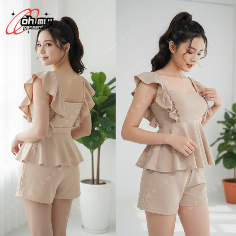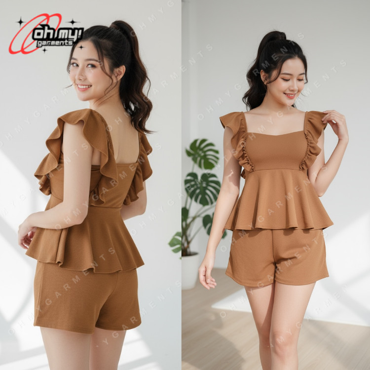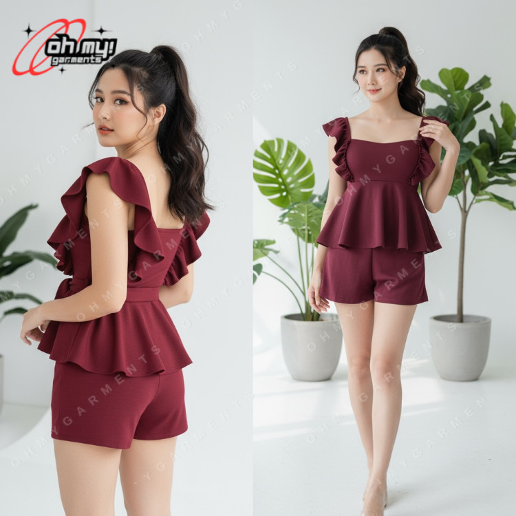 Oh My Garments | MAIJAH Plain Top with raffle and Short Terno Set Coords for Women Crepe