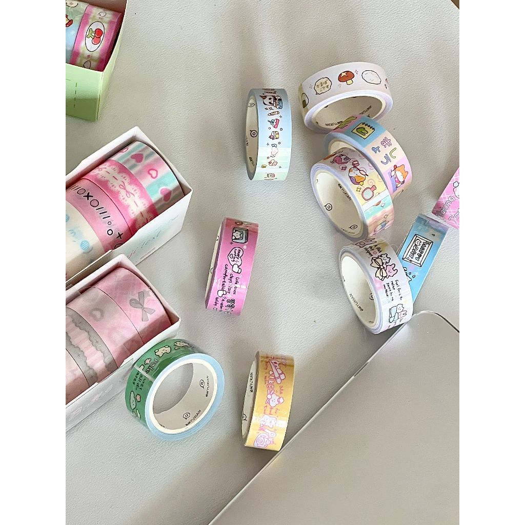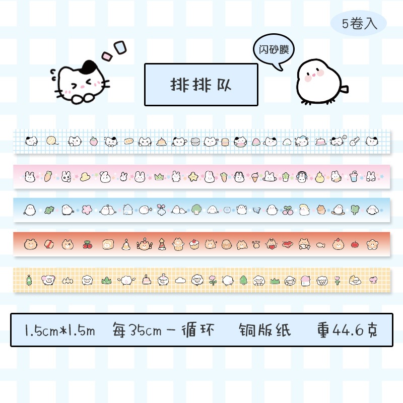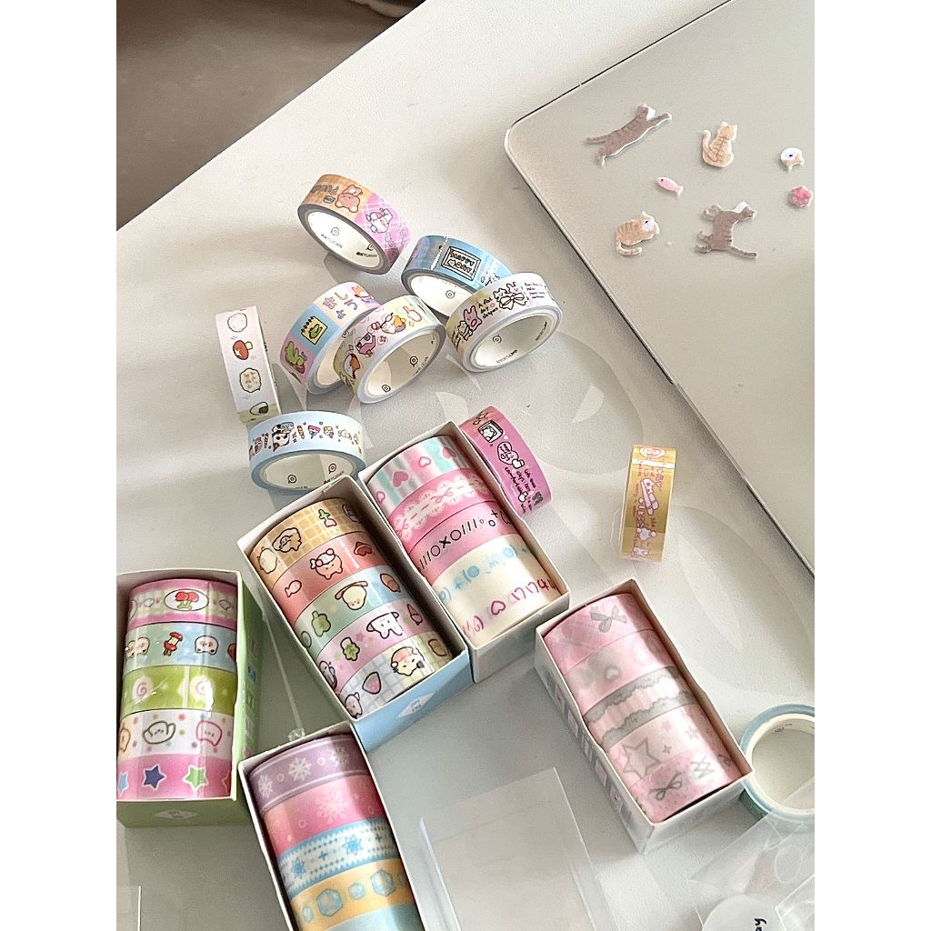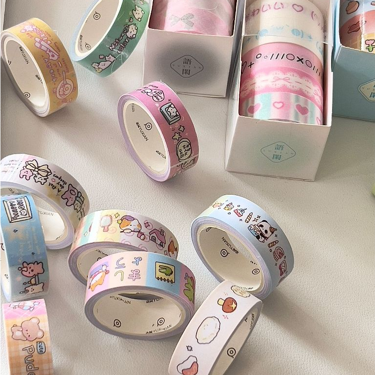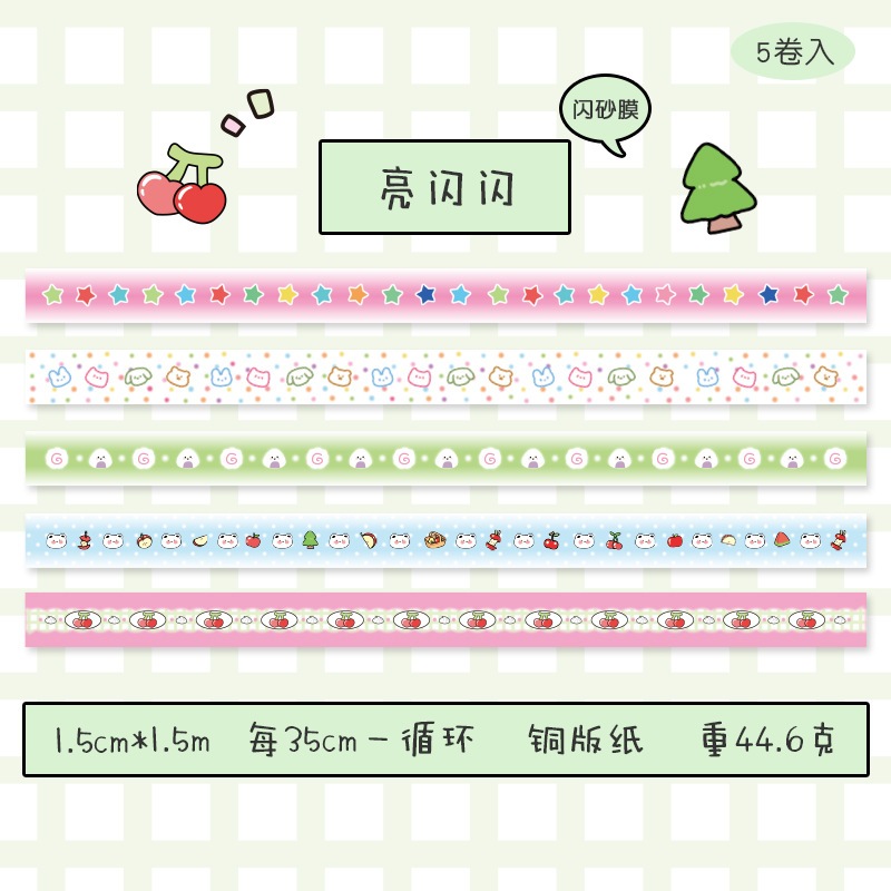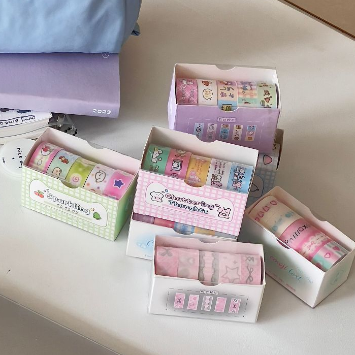 Ohaya | 5 Rolls/Box Fine Flash Tape Cute Cute Cute Things Washi Tape Set diy Photocard Border Decoration Sticker Handbook Diary Sticker Tape