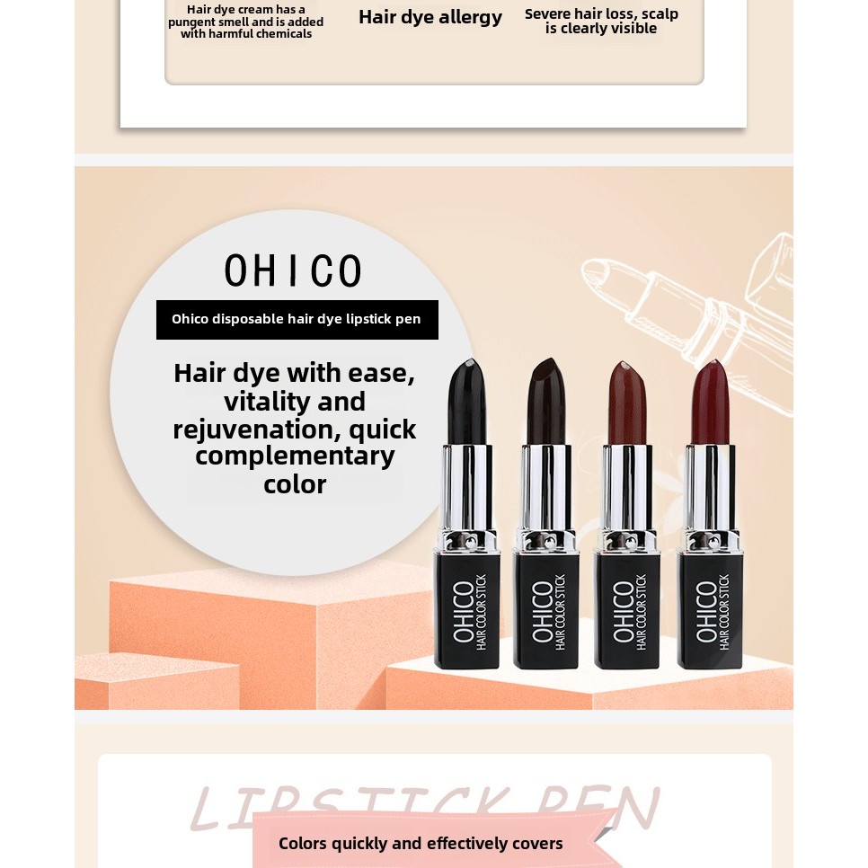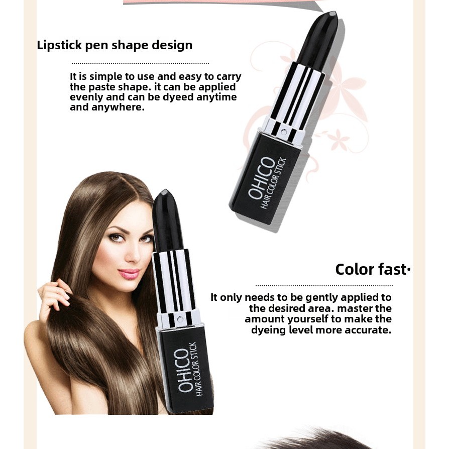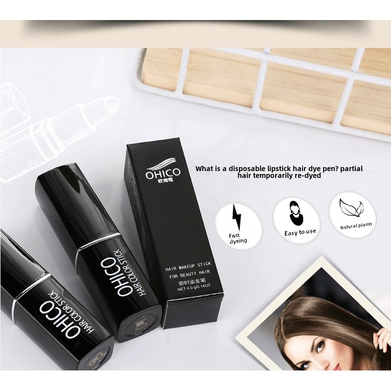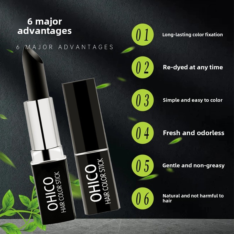 Ohico Disposable Hair Dye Stick | Plant Formula | Do Not Stick to the Scalp | Quick Cover White Hair | Lipstick Design | Portable Easy Use