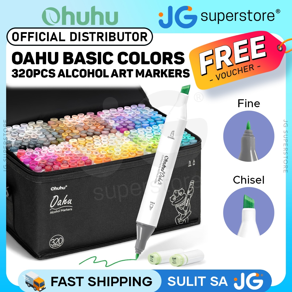 Ohuhu Oahu Series Alcohol Based 320+1 Vibrant Colors + Colorless Blender Fine & Chisel Art Markers