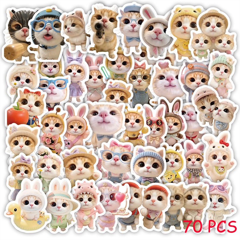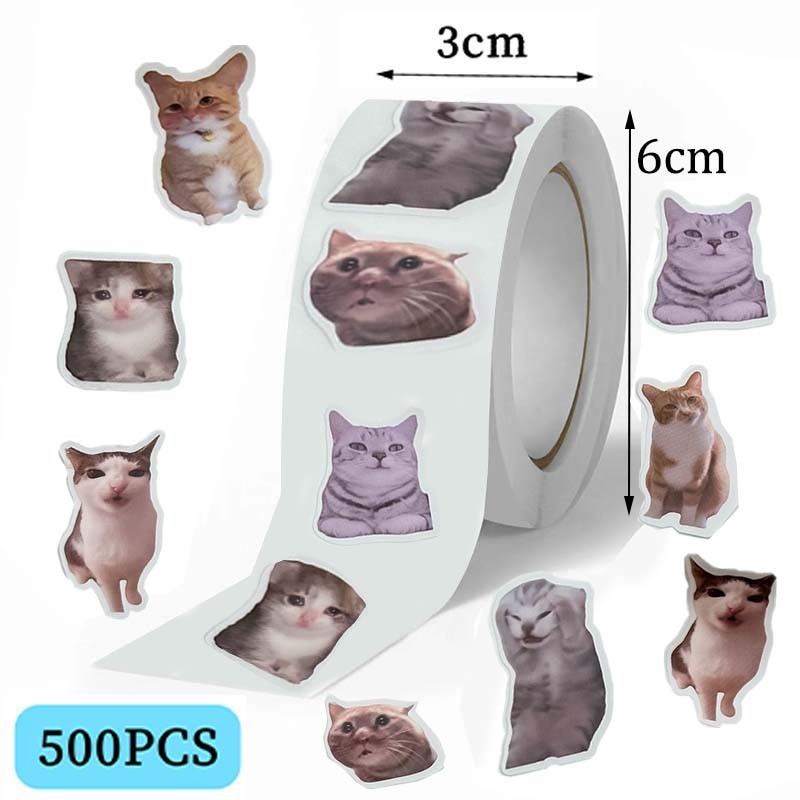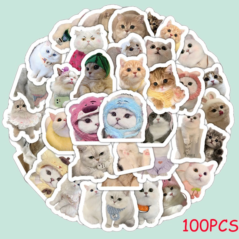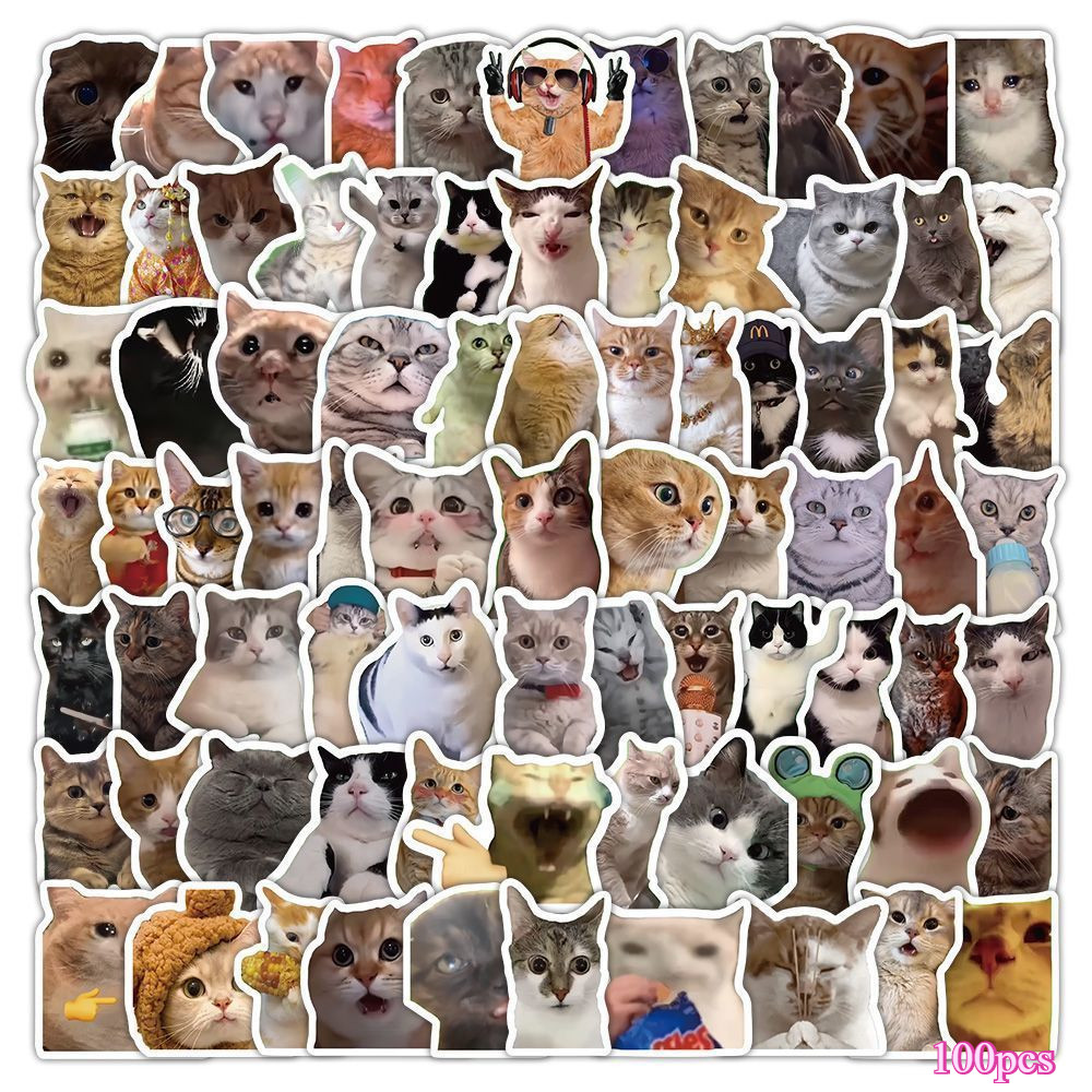 Oiia Cat Meme Plush Keychain With Sound 100pcs Emoji GlF Funny Cat Memes Creative Waterproof Stickers