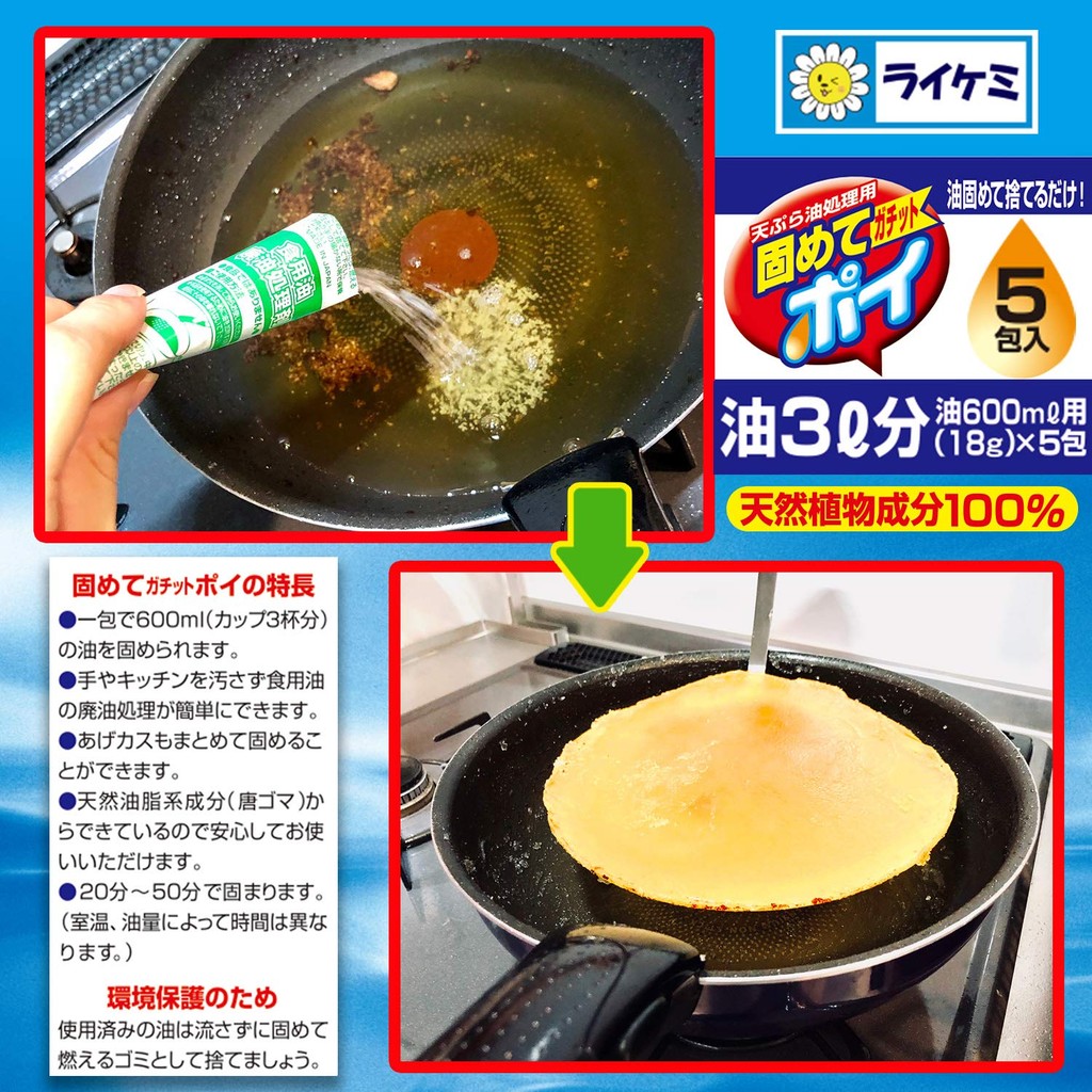 Oil Absorption Agent - Solidifier Packets (18g x 5 packets, Absorbs 600ml of Oil per Packet)