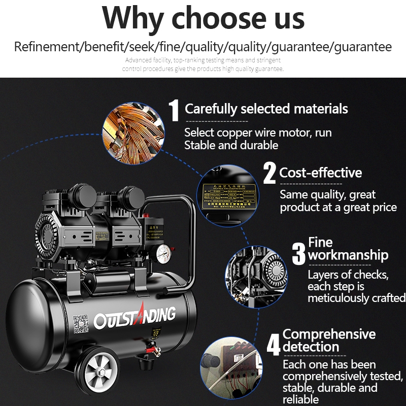 Oil Free Air Compressor Silent Type Oil Less Heavy duty professional power tools air pump
