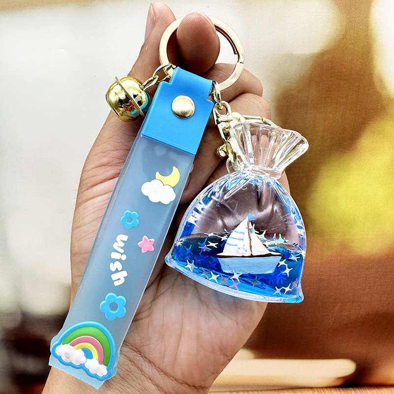Oil Ocean Sailboat Floating Bottle Keychain Exquisite Children's Schoolbag Pendant Car Key Chain Ring Couple Pendant
